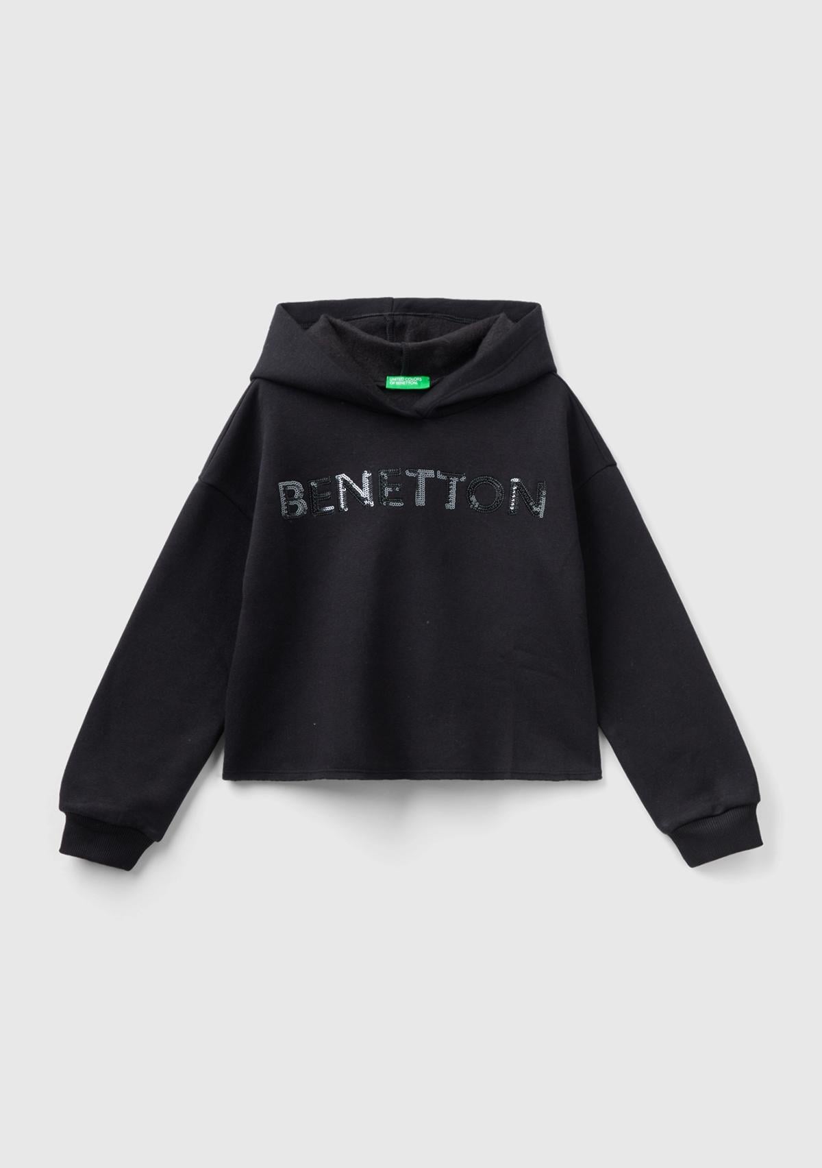 Kız Çocuk Siyah Slogan Baskılı Crop Sweatshirt
