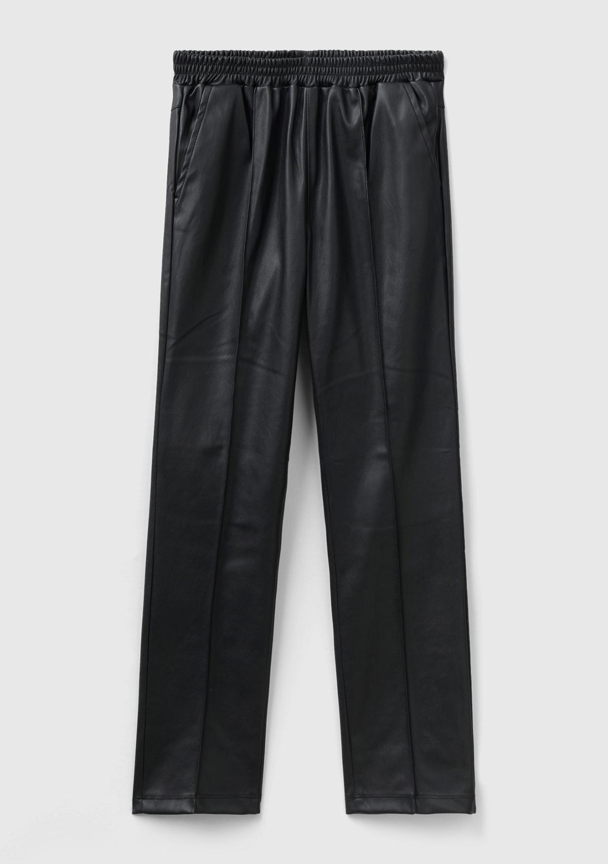 Kız Çocuk Siyah Suni Deri Beli Lastikli Pantolon