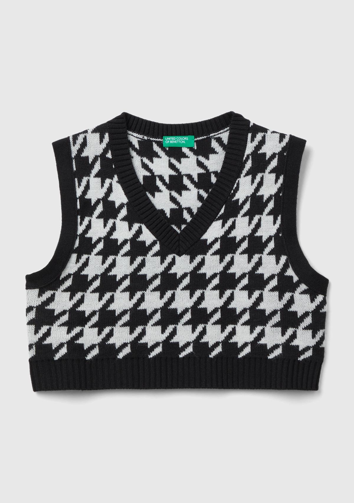 Kız Çocuk Siyah Tamamı Desenli V Yaka Crop Süveter