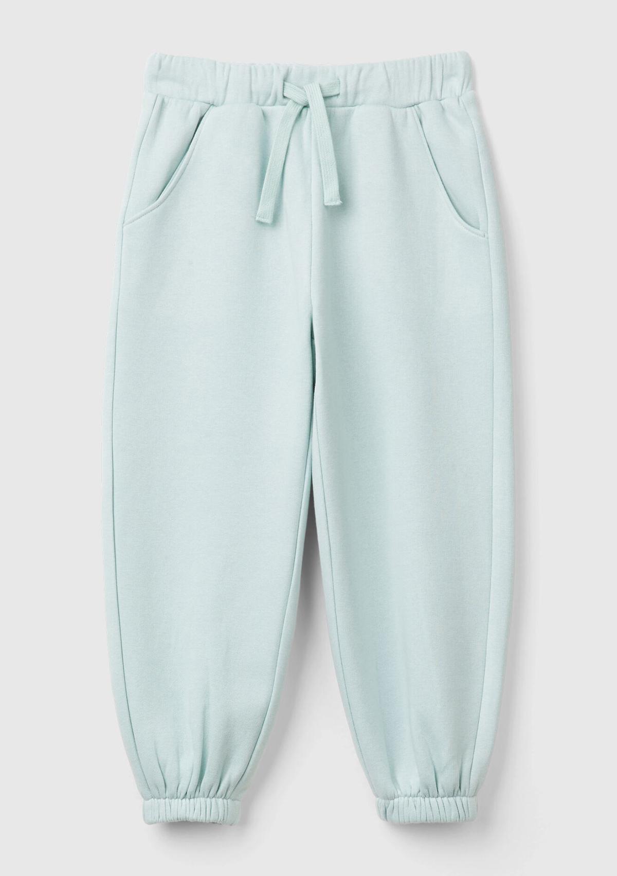 Kız Çocuk Su Yeşili Arkası Logo Detaylı Beli Paçası Lastikli Büzgü İpli Eşofman Altı