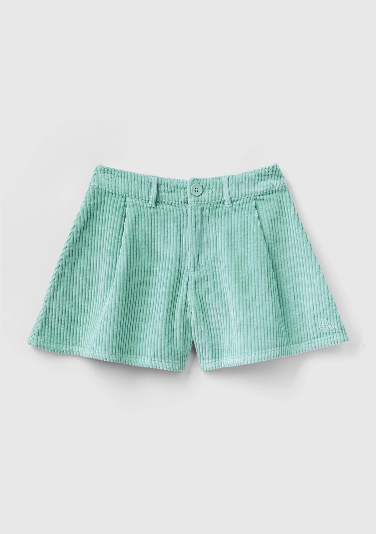 Kız Çocuk Su Yeşili BE İşlemeli Kadife Mini Şort