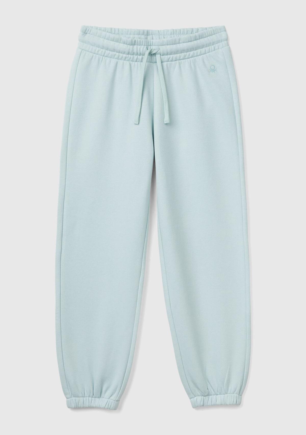 Kız Çocuk Su Yeşili Beli Lastikli Büzgü İpli Lastikli Manşetli Eşofman Altı
