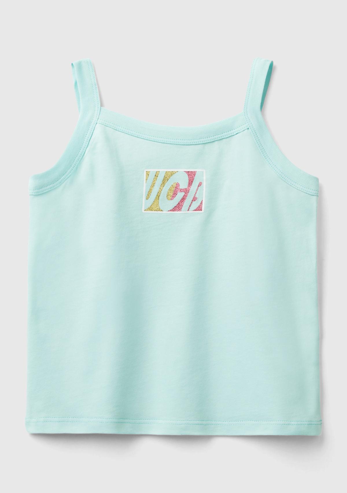 Kız Çocuk Su Yeşili Simli Logo Baskılı İnce Askılı Atlet