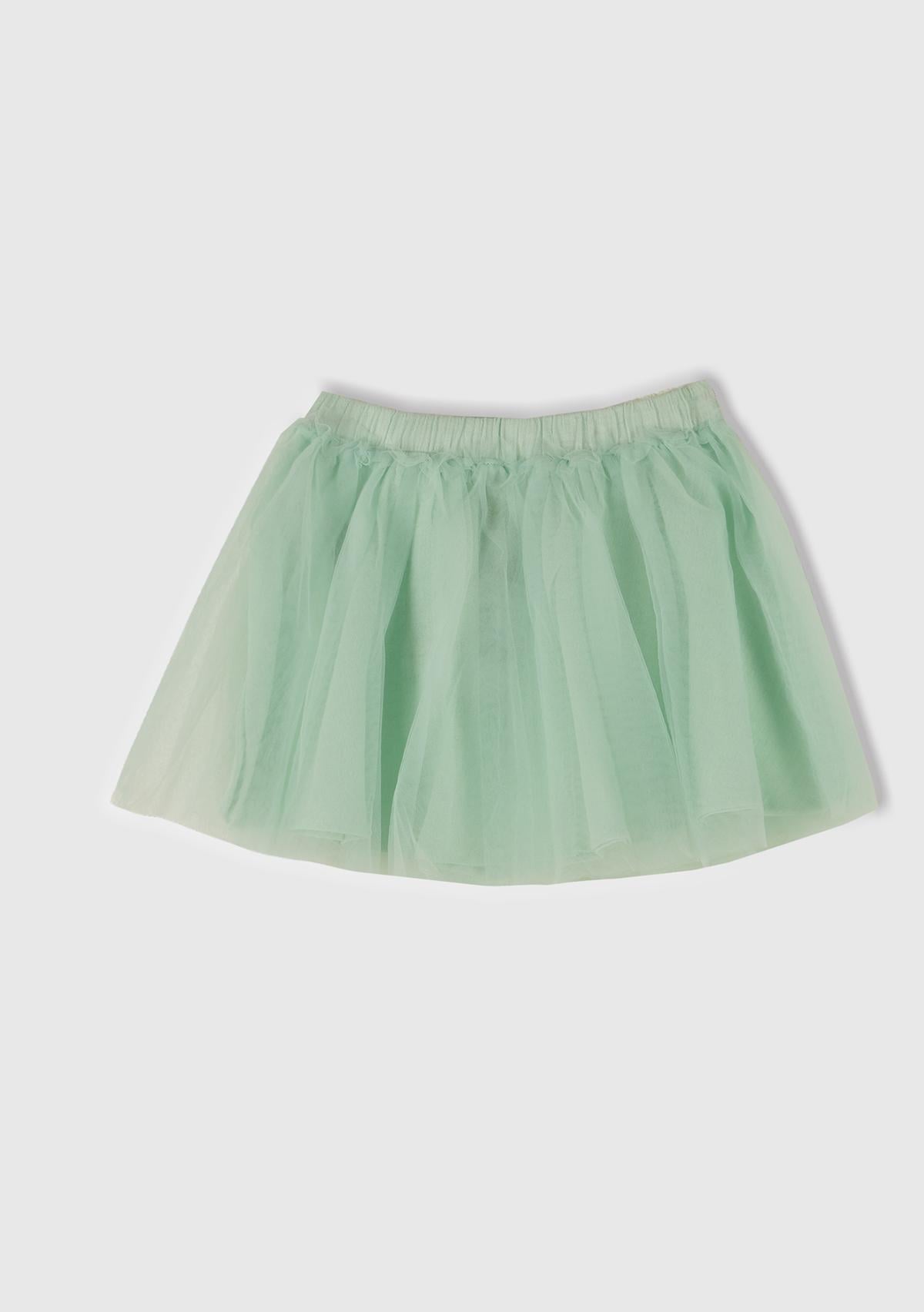 Kız Çocuk Su Yeşili Tül Detaylı Beli Lastikli Pileli Etek
