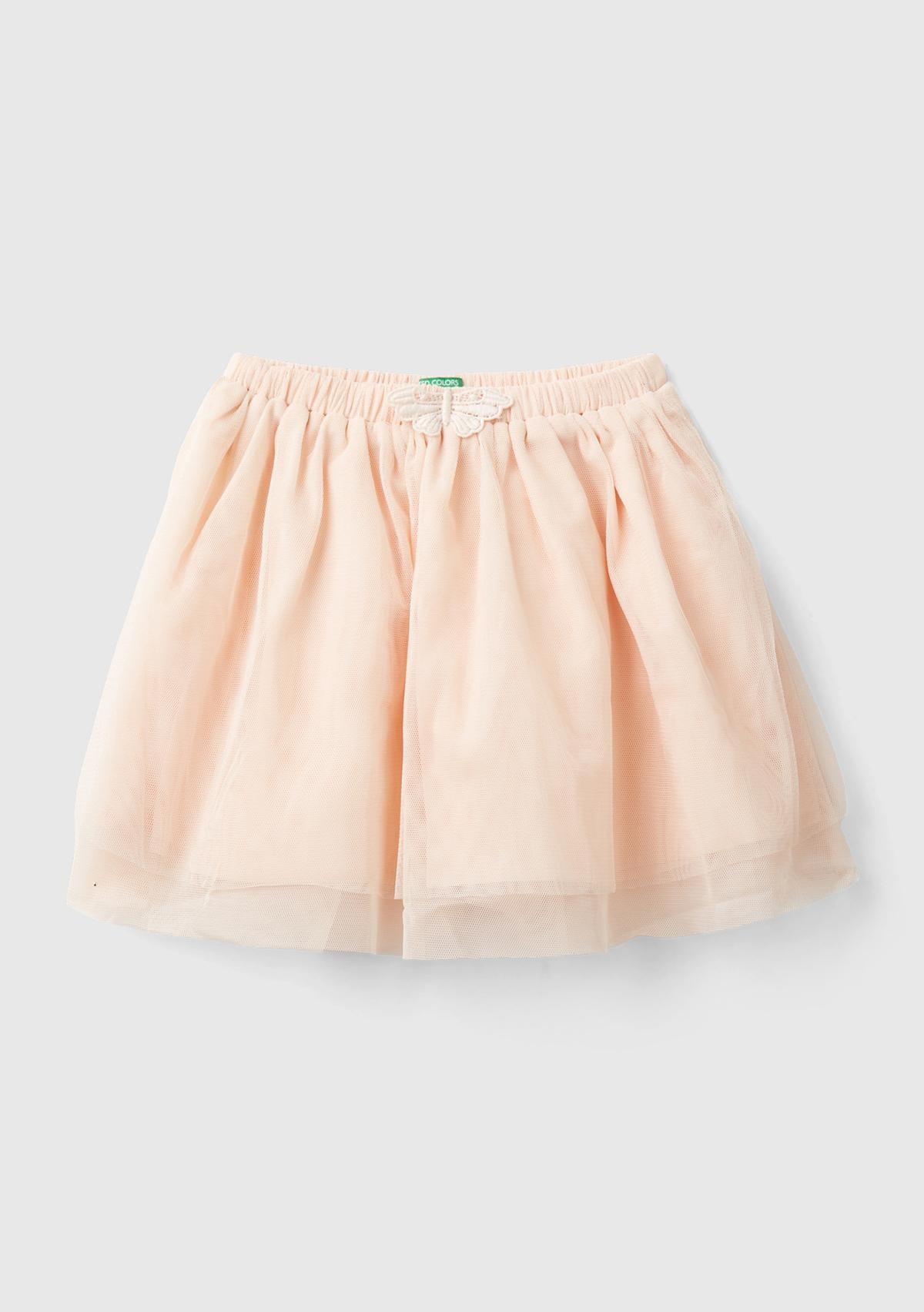 Kız Çocuk Toz Pembe Kelebek Detaylı Çift Katlı Tül Etek