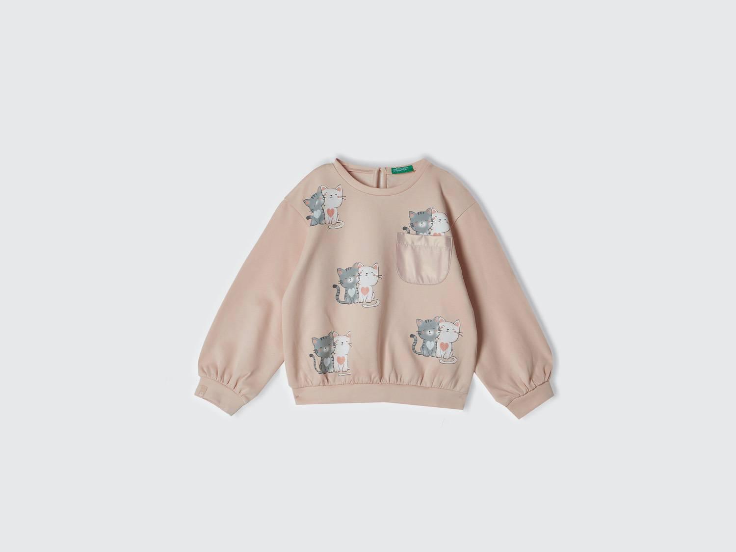 Kız Çocuk Toz Pembe Önü Baskılı Göğüs Cepli Arkası Damla Düşük Omuz Sweatshirt