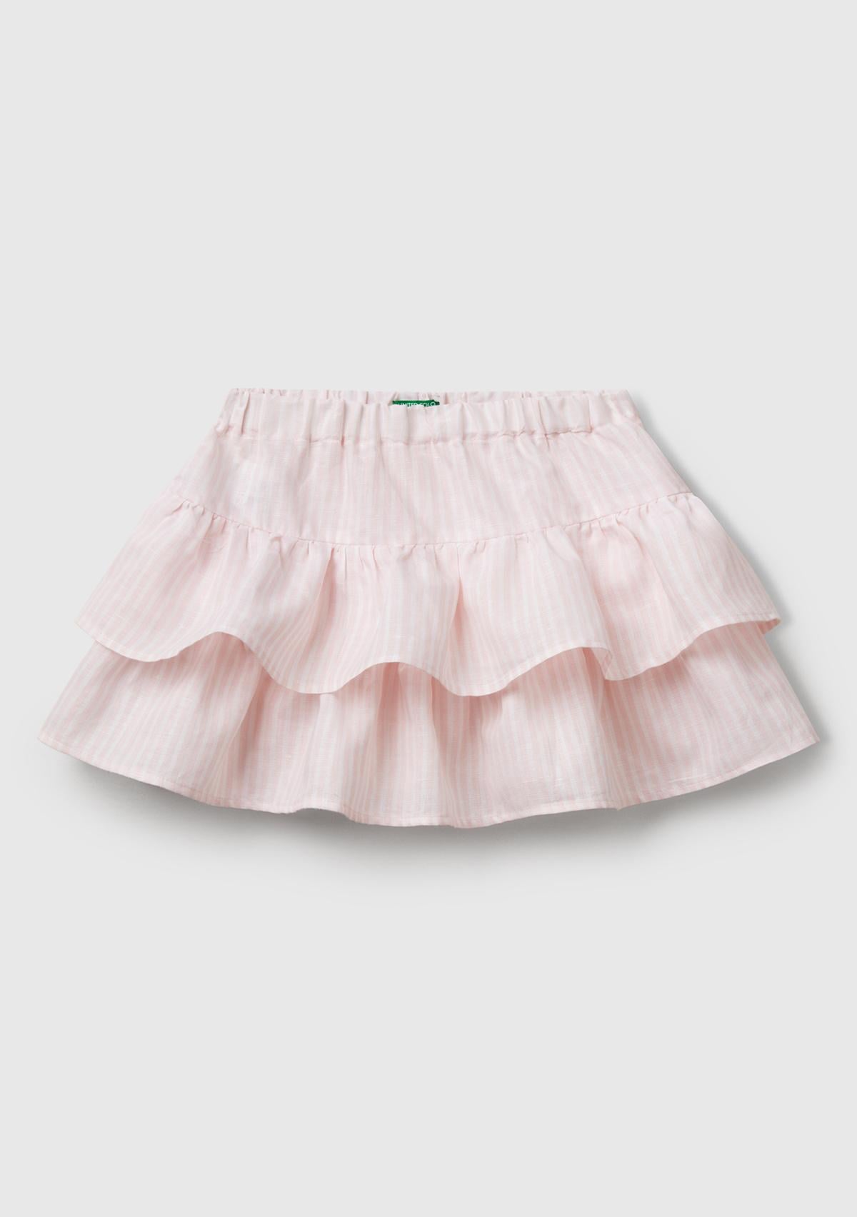Kız Çocuk Toz Pembe Tamamı Baskılı Beli Lastikli Katlı Etek
