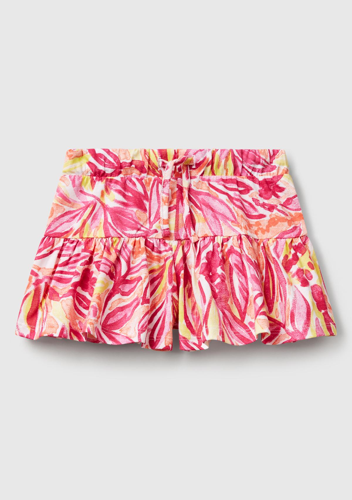 Kız Çocuk Turuncu Desenli Büzgü İpli Etek Ucu Pileli Şort