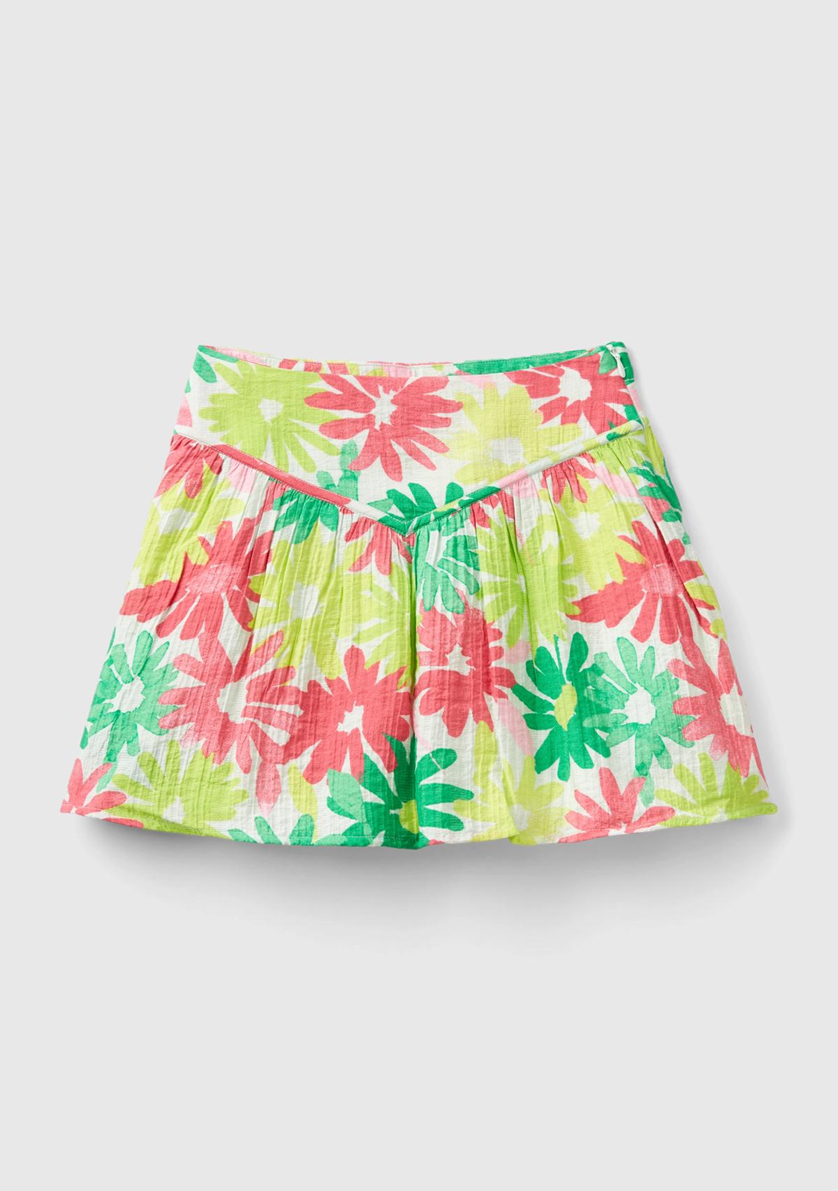 Kız Çocuk Yeşil- Pembe Tamamı Çiçek Baskılı Beli Bant Detaylı Etek