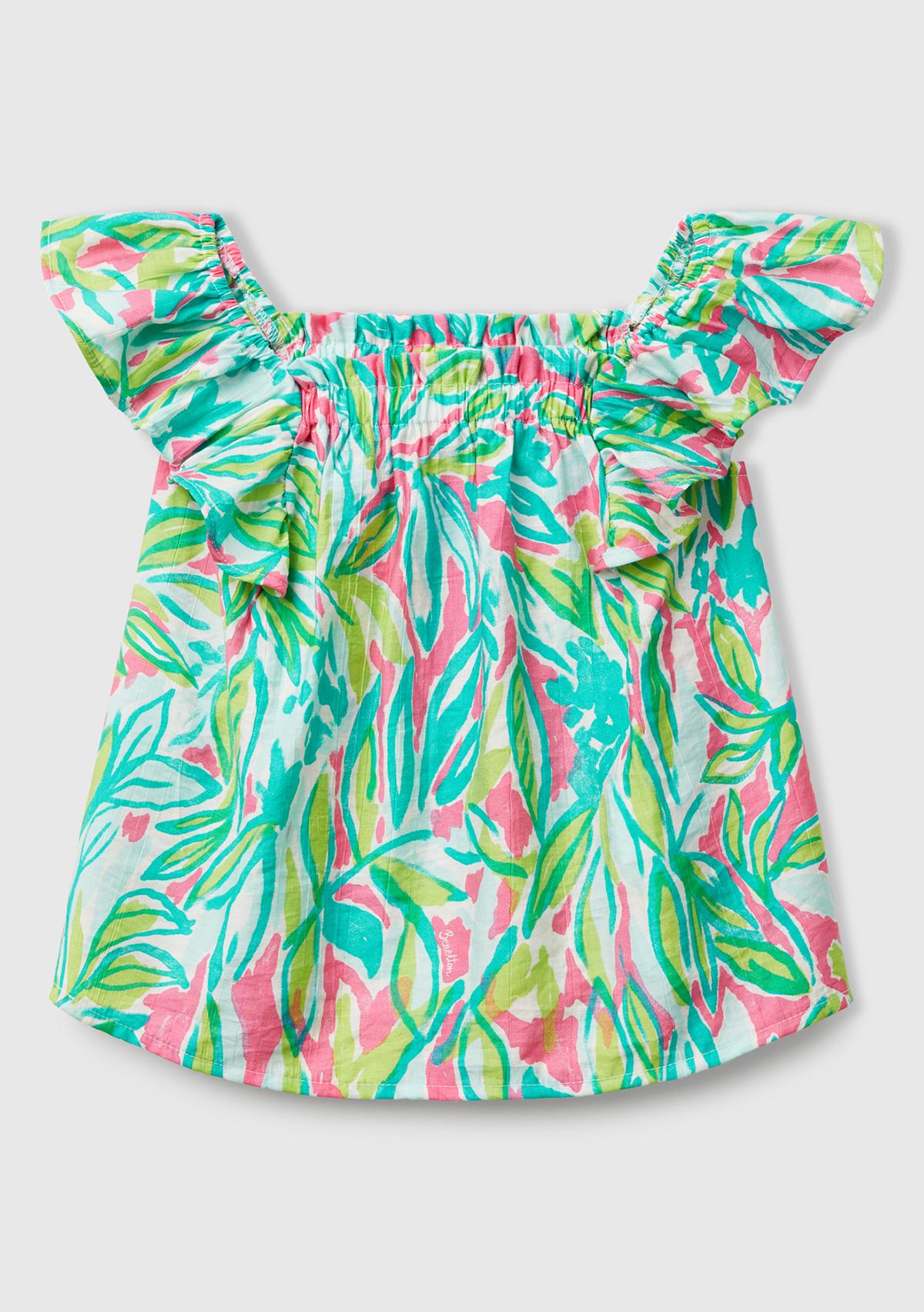 Kız Çocuk Yeşil Viskoz Karışımlı Baskılı Hafif Bol Kesim Omuz Askılı Üst