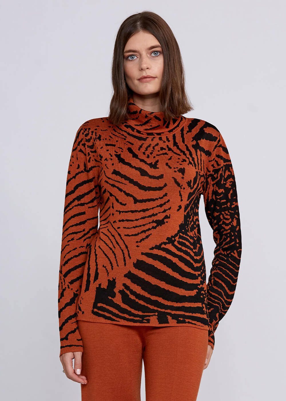 İtalyan İplik Balıkçı Yaka Jakarlı Uzun Kollu Normal Kesim %70 Yün %30 Lyocell Tencel Ürün Kodu: 2204051147
