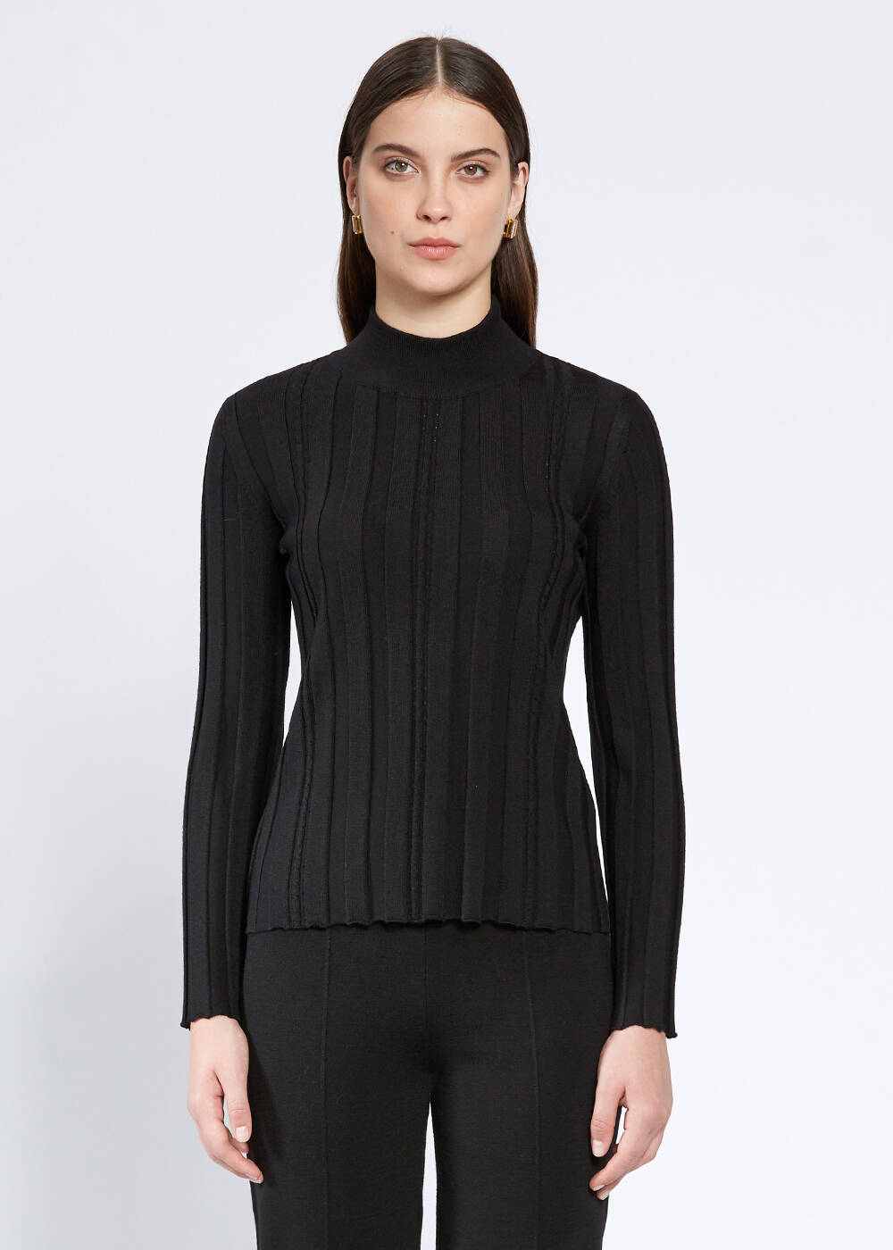 Knitss Uzun Kollu Balıkçı Yaka Merino Yün Siyah Triko