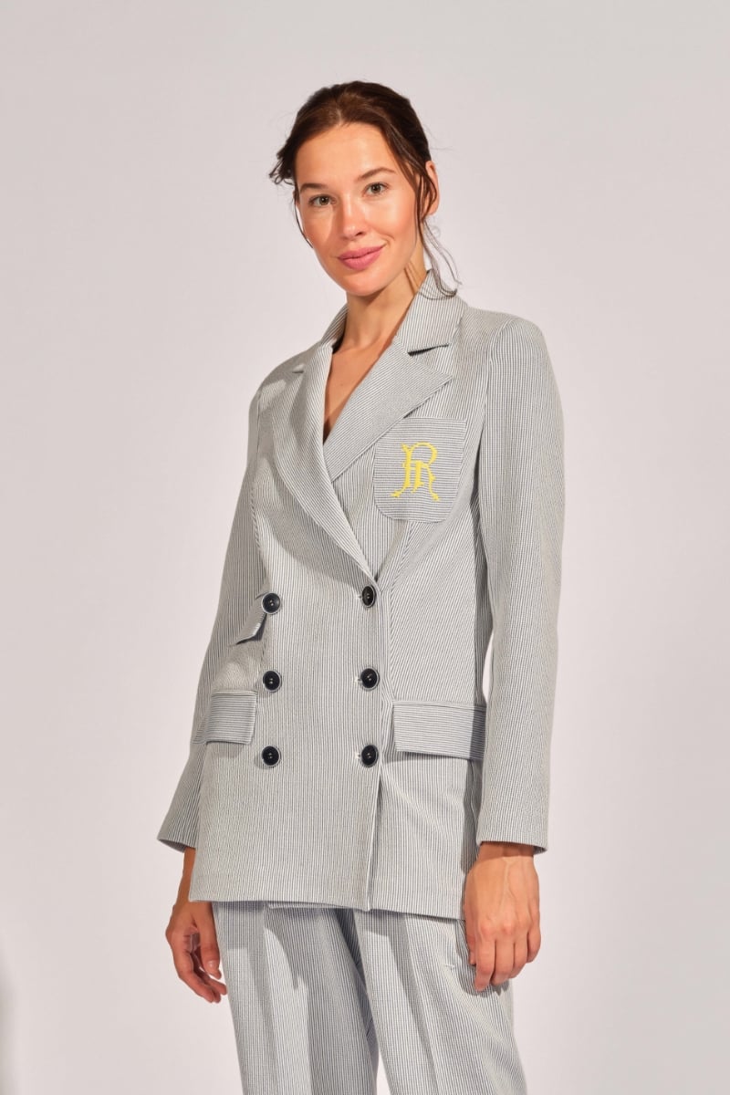 Ceket yaka, nakış detaylı blazer ceket.%38 Polyester %57 Cotton %5 ElastaneBu ürünü 30 derecede, benzer renklerle, tersten yıkayınız ve gölgede kurutunuz. Baskı veya nakış olan bölgeye ütü temas ettirmeyiniz, bu bölge tersten ütülenebilir.
