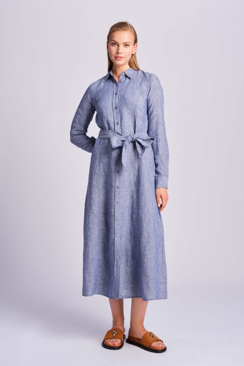 Düğme kapatmalı, beli kuşak bağlamalı, arkada nakış detaylı keten gömlek elbise.%100 LinenBu ürünü 30 derecede, benzer renklerle, tersten yıkayınız ve gölgede kurutunuz. Baskı veya nakış olan bölgeye ütü temas ettirmeyiniz, bu bölge tersten ütülenebilir.