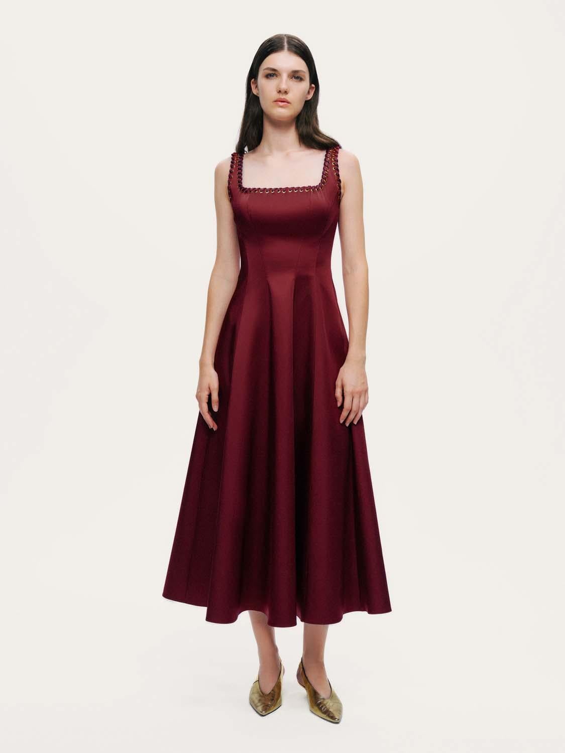 Regular fit ve tam kalıp kesimiyle feminen bir siluet sunan bu midi elbise, sade çizgileri modern detaylarla buluşturuyor. Dokuma yapısı zarif bir akış sağlarken, kalın askıları ve kare yakası güçlü ve sofistike bir duruş yaratıyor. Kolsuz tasarımı hem ferahlık hem de zamansız bir şıklık sunarken, ince gizli fermuar kapaması elbiseye temiz bir bitiş kazandırıyor. Kuş gözü detayları ise tasarıma özgün ve modern bir dokunuş ekleyerek elbiseyi dikkat çekici hale getiriyor. Hem özel davetlerde hem de şık günlük kombinlerde kolayca öne çıkan, etkileyici bir parça. Kalıp: Regular Fit Model Ürün Bedeni: S Model Bedeni: Boy 1.79 / Göğüs 83 cm / Bel 64 cm / Kalça 90 cm