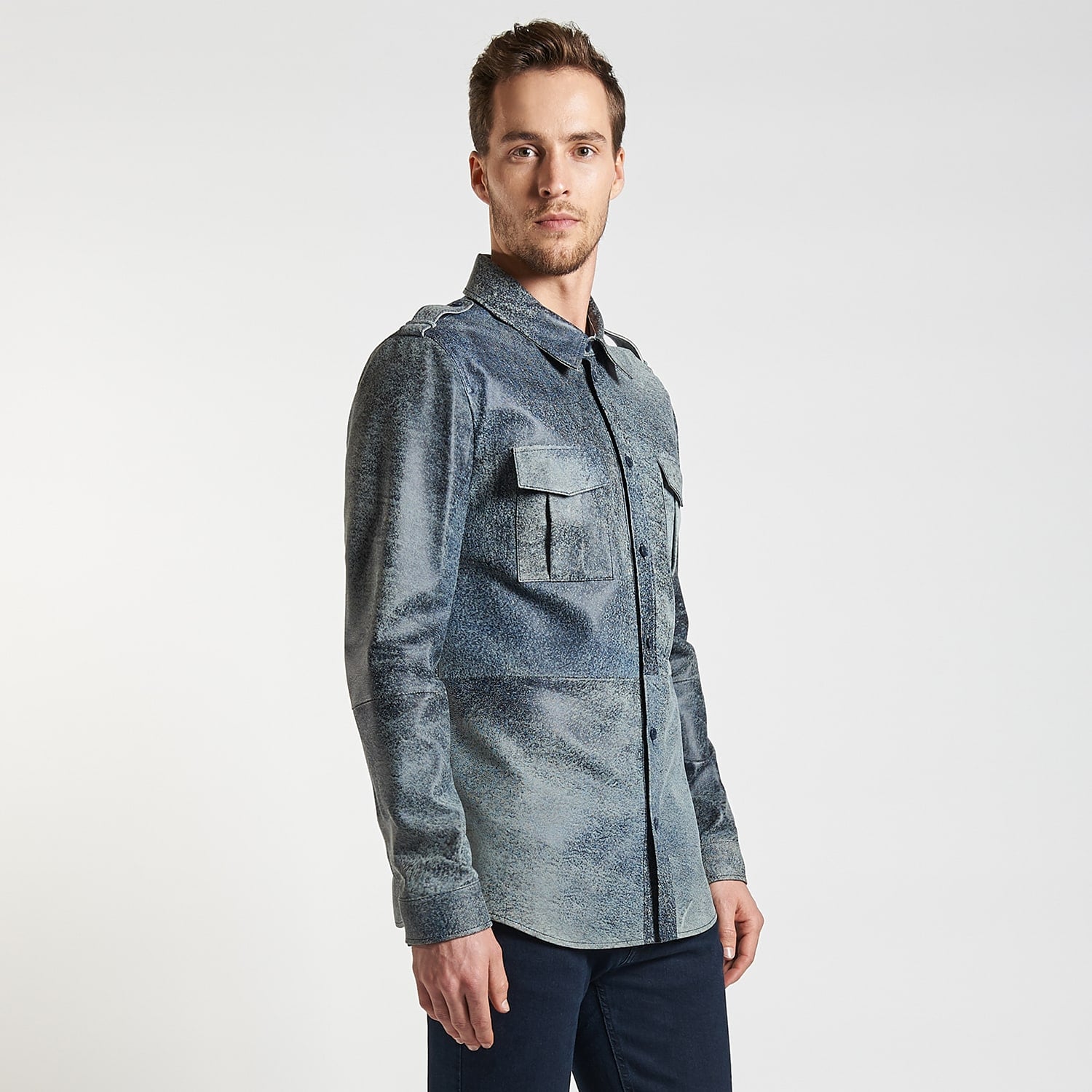 Erkek, deri gömlek. Önde düğme kapamalı. Üstte iki adet kapaklı torba cebi mevcuttur. Omuzlarda apolet detayı kullanılmıştır. %100 Koyun deriden astarsız çalışılmıştır. Bu ürün, et endüstrisinin yan ürünü olarak elde edilen ve sürdürülebilir yöntemler ile Leather Working Group Altın sertifikalı Desa tesislerinde tabaklanan deriler kullanılarak üretilmiştir.-Erkek, deri gömlek. Önde düğme kapamalı. Üstte iki adet kapaklı torba cebi mevcuttur. Omuzlarda apolet detayı kullanılmıştır. %100 Koyun deriden astarsız çalışılmıştır. Bu ürün, et endüstrisinin yan ürünü olarak elde edilen ve sürdürülebilir yöntemler ile Leather Working Group Altın sertifikalı Desa tesislerinde tabaklanan deriler kullanılarak üretilmiştir.