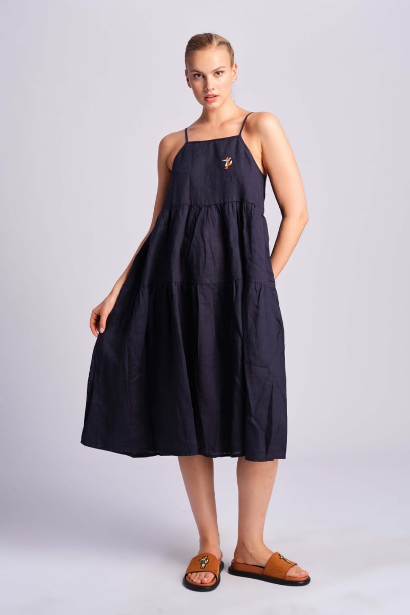 2 adet cepli, önde figür nakışlı askılı elbise.%100 LinenÜrün özel bir boya tekniğiyle boyanmıştır, akar boya kullanılmıştır, yıkadıkça renginin açılması bu ürünün özelliğidir.Bu ürünü 30 derecede, benzer renklerle, tersten yıkayınız ve gölgede kurutunuz. Baskı veya nakış olan bölgeye ütü temas ettirmeyiniz, bu bölge tersten ütülenebilir.