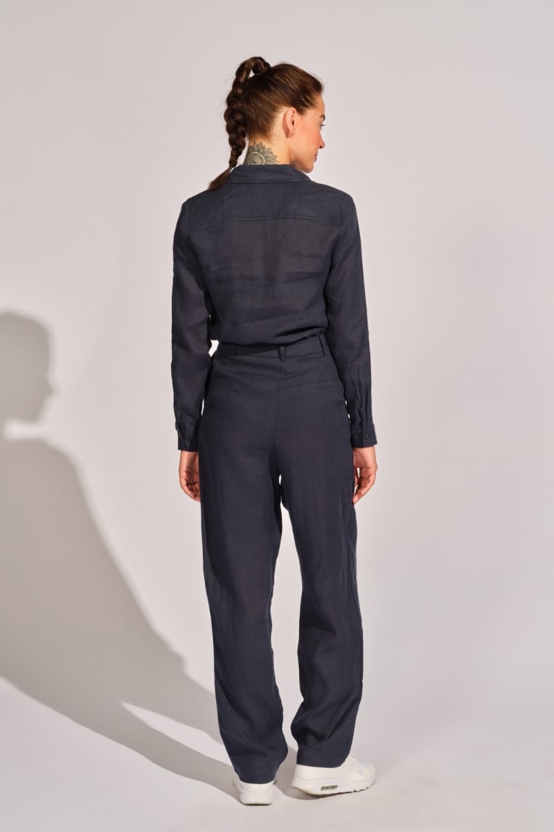 Düğme detaylı bol keten pantolon.%100 LinenBu ürünü 30 derecede, benzer renklerle, tersten yıkayınız ve gölgede kurutunuz. Baskı veya nakış olan bölgeye ütü temas ettirmeyiniz, bu bölge tersten ütülenebilir.