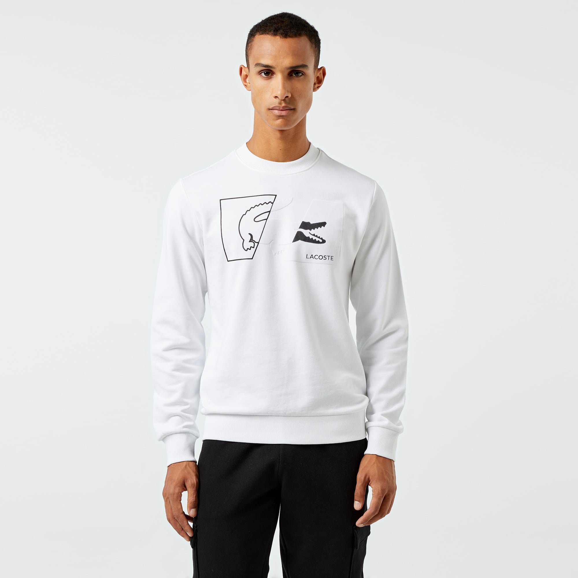 Lacoste Erkek Regular Fit Bisiklet Yaka Baskılı Beyaz Sweatshirt