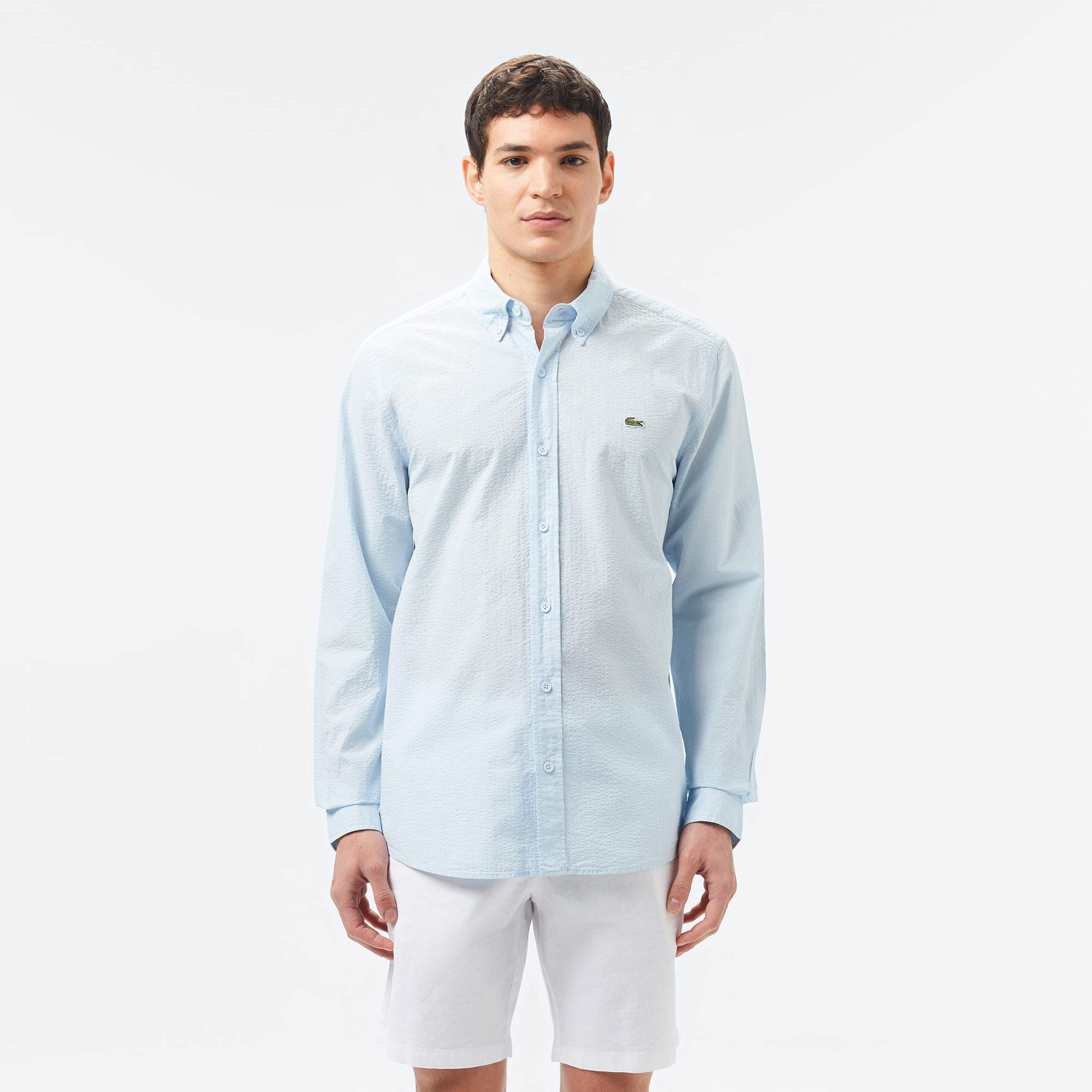 Lacoste Erkek Slim Fit Düğmeli Yaka Açık Mavi Gömlek