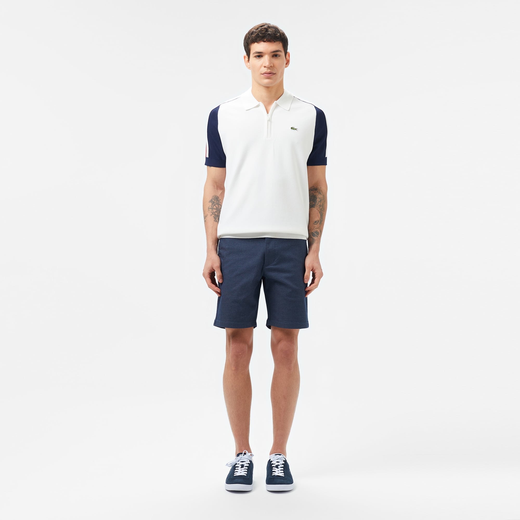 Slim fit kesimiyle modern ve zarif bir görünüm sunan Lacoste bermuda şort, streç pamuklu yapısıyla gün boyu konfor sağlıyor. Cep kısmında yer alan timsah logosu, markanın ikonik stilini yansıtarak tasarımı tamamlıyor. Hem günlük hem de casual kombinlere uyum sağlayan şık bir seçenektir.