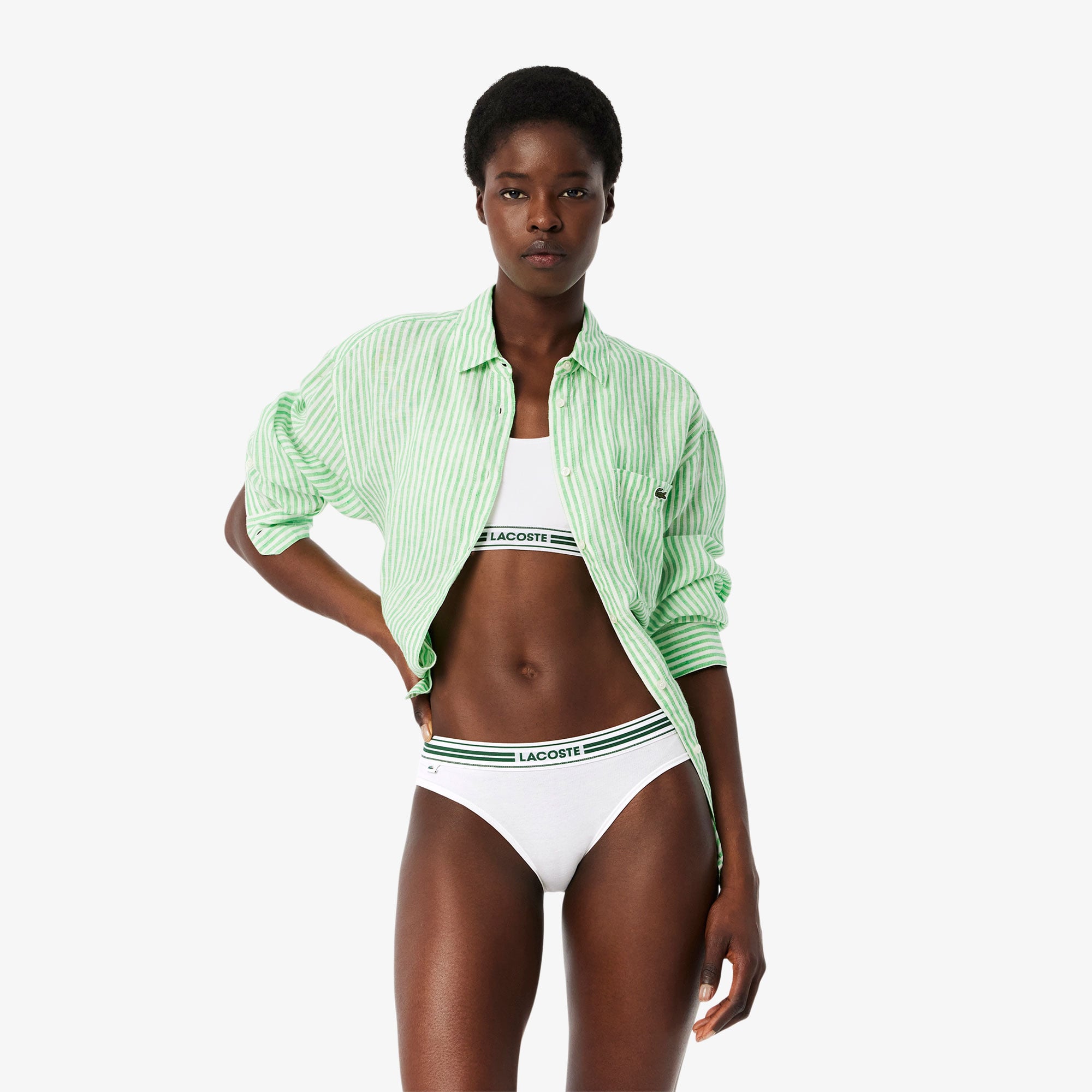 Lacoste kadın külot koleksiyonu, vücudunuzla birlikte rahatça hareket edecek şekilde tasarlanmış esnek elastik bel bandı ile size yumuşaklık, rahatlık ve şıklık sunuyor.