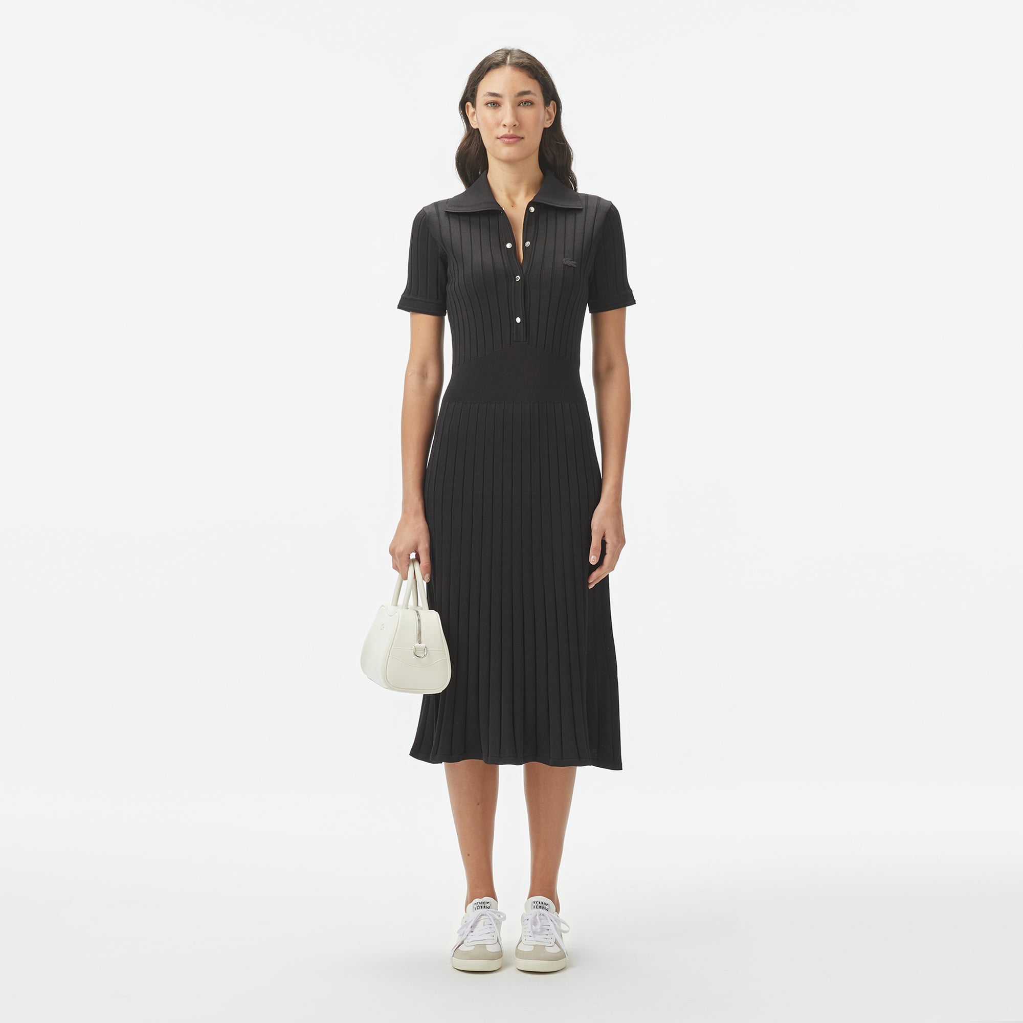 Lacoste Kadın Flare Fit Kısa Kollu Polo Yaka Siyah Elbise