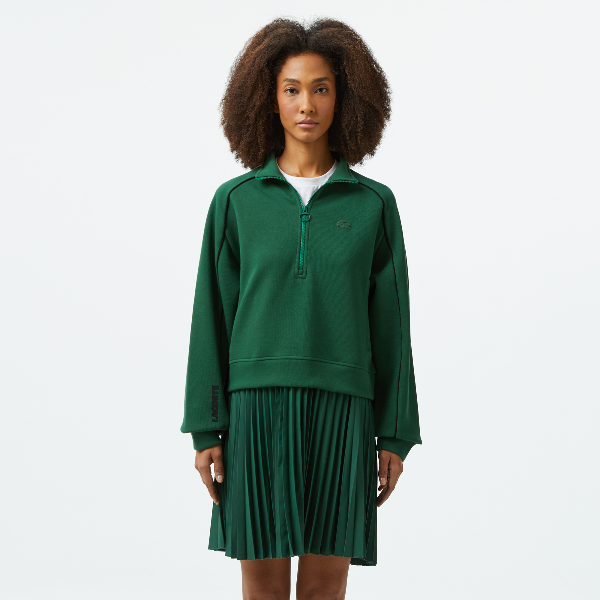 Lacoste Kadın Flare Fit Uzun Kollu Fermuarlı Yaka Koyu Yeşil Elbise