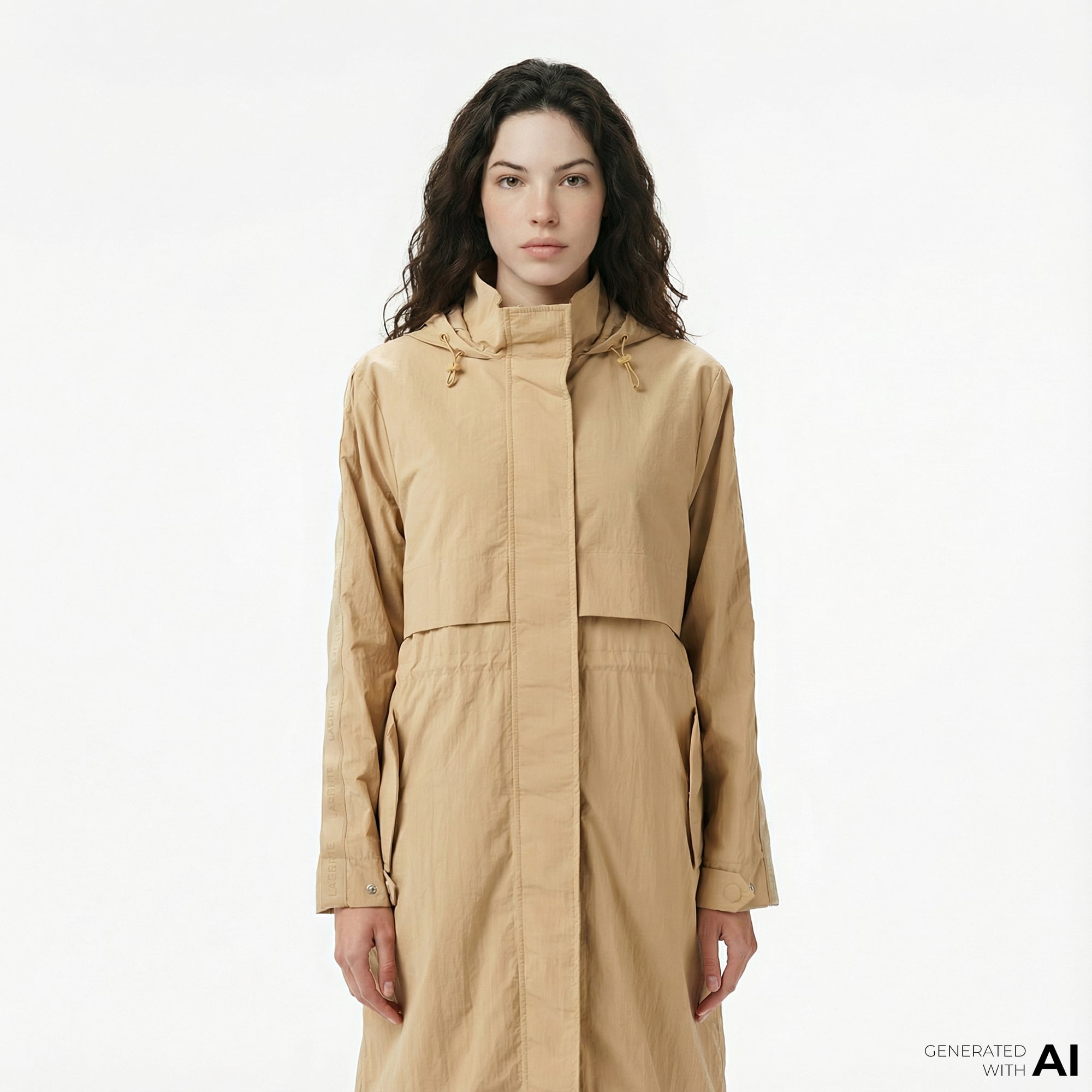Lacoste Kadın Kapüşonlu Bej Mont, soğuk havalarda üstün koruma sağlayan kapüşonlu tasarımıyla öne çıkar.