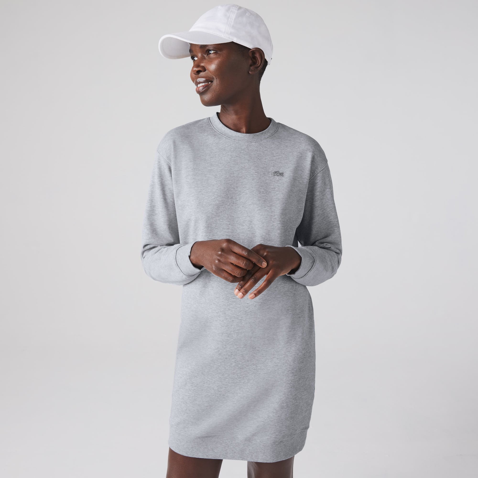 Lacoste Kadın Loose Fit Uzun Kollu Bisiklet Yaka Desenli Gri Elbise