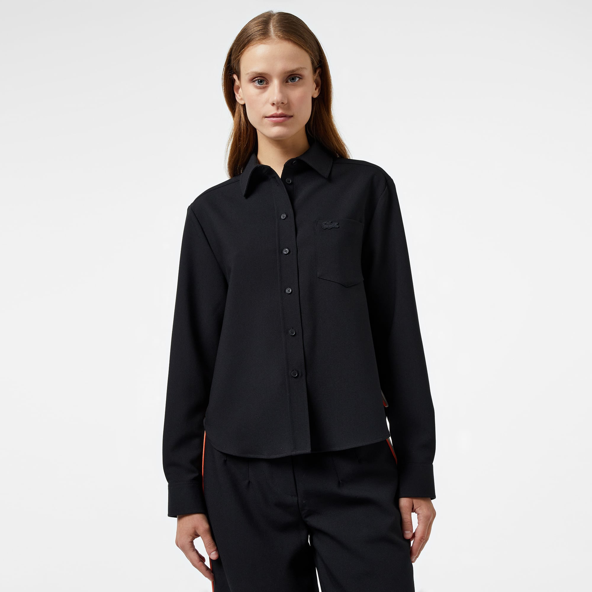Lacoste Kadın Oversize Fit Gömlek Yaka Siyah Gömlek