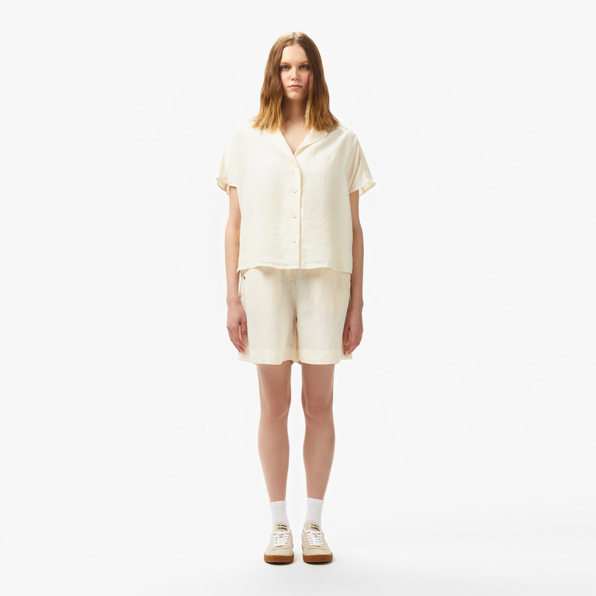 Regular fit kesimiyle hem şık hem de rahat bir tarz sunan kadın bermuda şort, yan cepleriyle pratik bir kullanım sağlıyor. Lastikli bel detayı sayesinde konfor ön planda tutulurken şort, gün boyu hareket özgürlüğü sunuyor. Tona ton timsah logosu, tasarıma zarif bir uyum kazandırarak modern bir görünüm oluşturuyor. Günlük stilleri tamamlayan bir tercih olarak dikkat çekiyor.