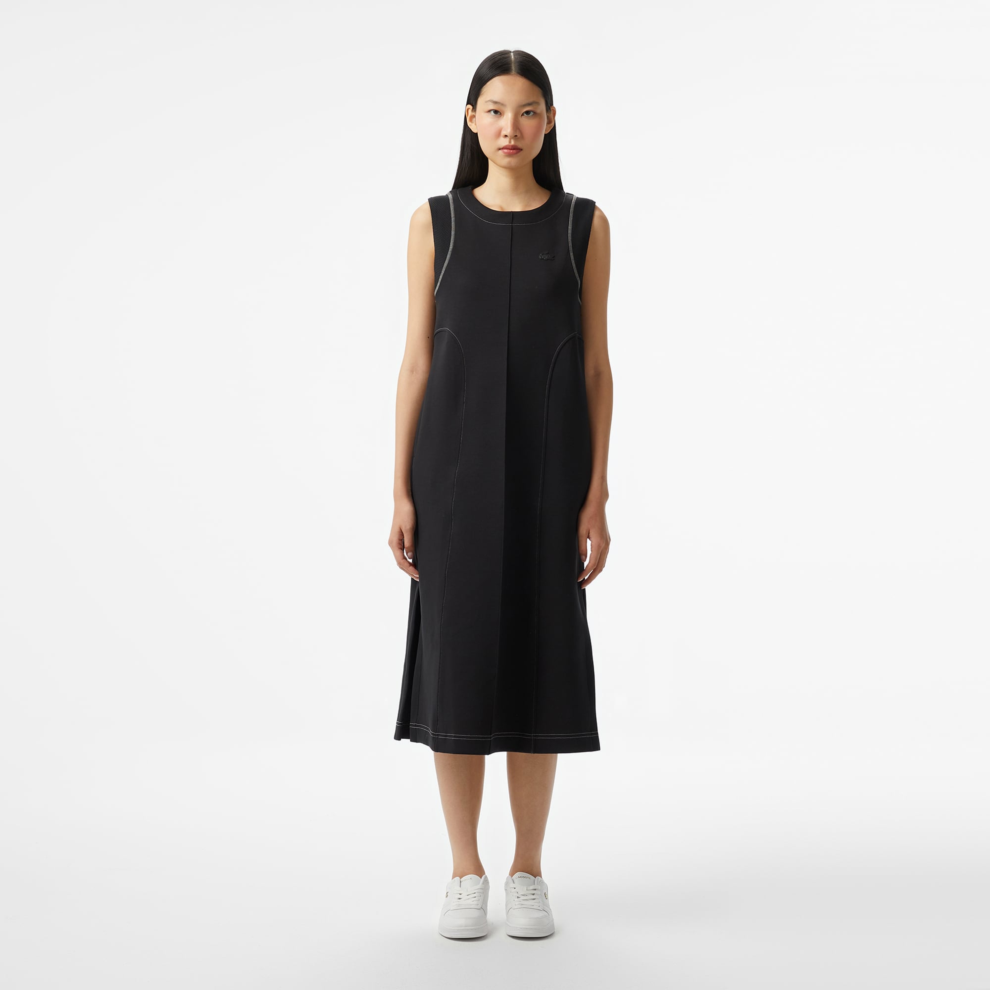 Lacoste Kadın Relaxed Fit Kolsuz Bisiklet Yaka Siyah Elbise