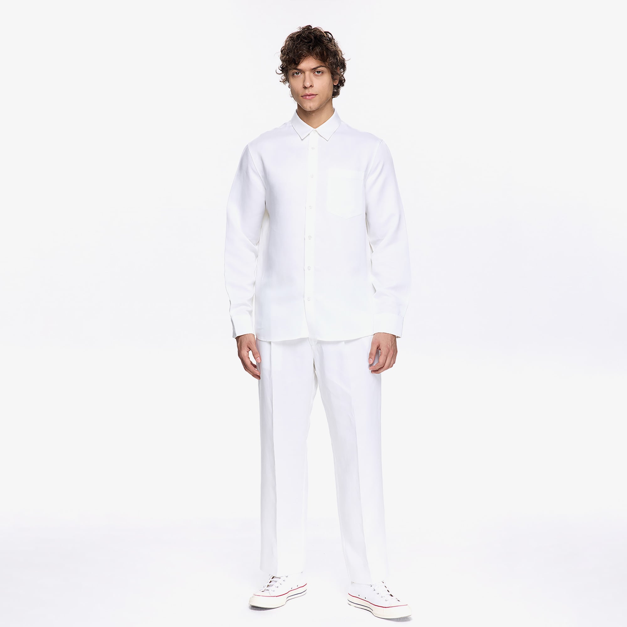Les Benjamins Classic Erkek Beyaz Gömlek, sade tasarımı ve beyaz rengiyle her kombinle uyum sağlar. Yumuşak kumaşı, rahat kullanım sunarken tarz bir görünüm sağlar.