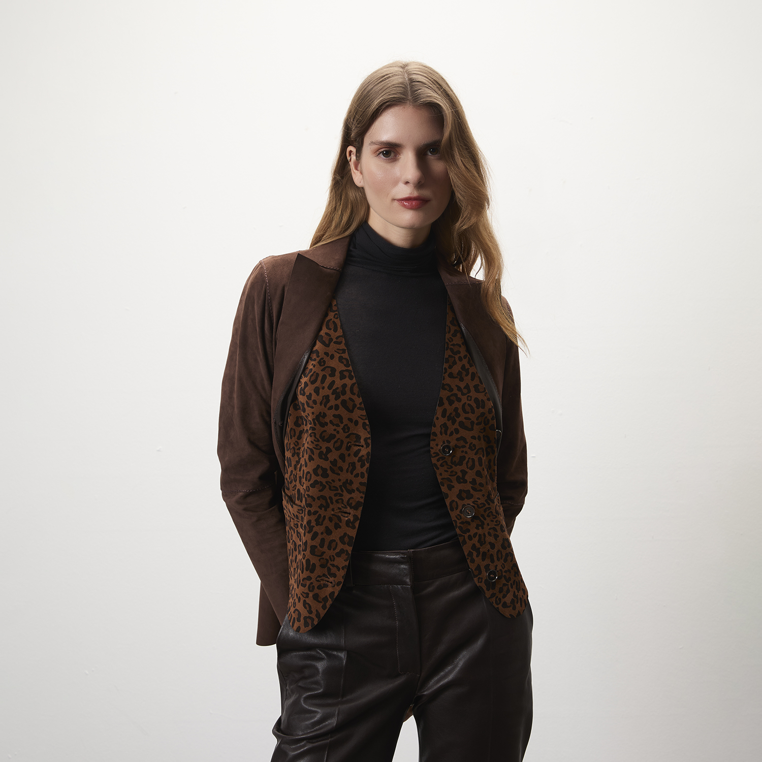 Kadın çift taraflı leopar desenli süet yelek, önden düğme kapamalıdır. Önde her iki yüzünde de üstten girişli cebi mevcuttur. Günlük kullanım için çok uygun ve rahat bir kalıptır. Ön yüzü leopar desenli süettir diğer yüzü ise deri olarak tasarlanmıştr. %100 keçi derisinden olup çift taraflı çalışılmıştır. Bu ürün, et endüstrisinin yan ürünü olarak elde edilen ve sürdürülebilir yöntemler ile Leather Working Group Altın sertifikalı Desa tesislerinde tabaklanan deriler kullanılarak üretilmiştir.-Kadın çift taraflı leopar desenli süet yelek, önden düğme kapamalıdır. Önde her iki yüzünde de üstten girişli cebi mevcuttur. Günlük kullanım için çok uygun ve rahat bir kalıptır. Ön yüzü leopar desenli süettir diğer yüzü ise deri olarak tasarlanmıştr. %100 keçi derisinden olup çift taraflı çalışılmıştır. Bu ürün, et endüstrisinin yan ürünü olarak elde edilen ve sürdürülebilir yöntemler ile Leather Working Group Altın sertifikalı Desa tesislerinde tabaklanan deriler kullanılarak üretilmiştir.