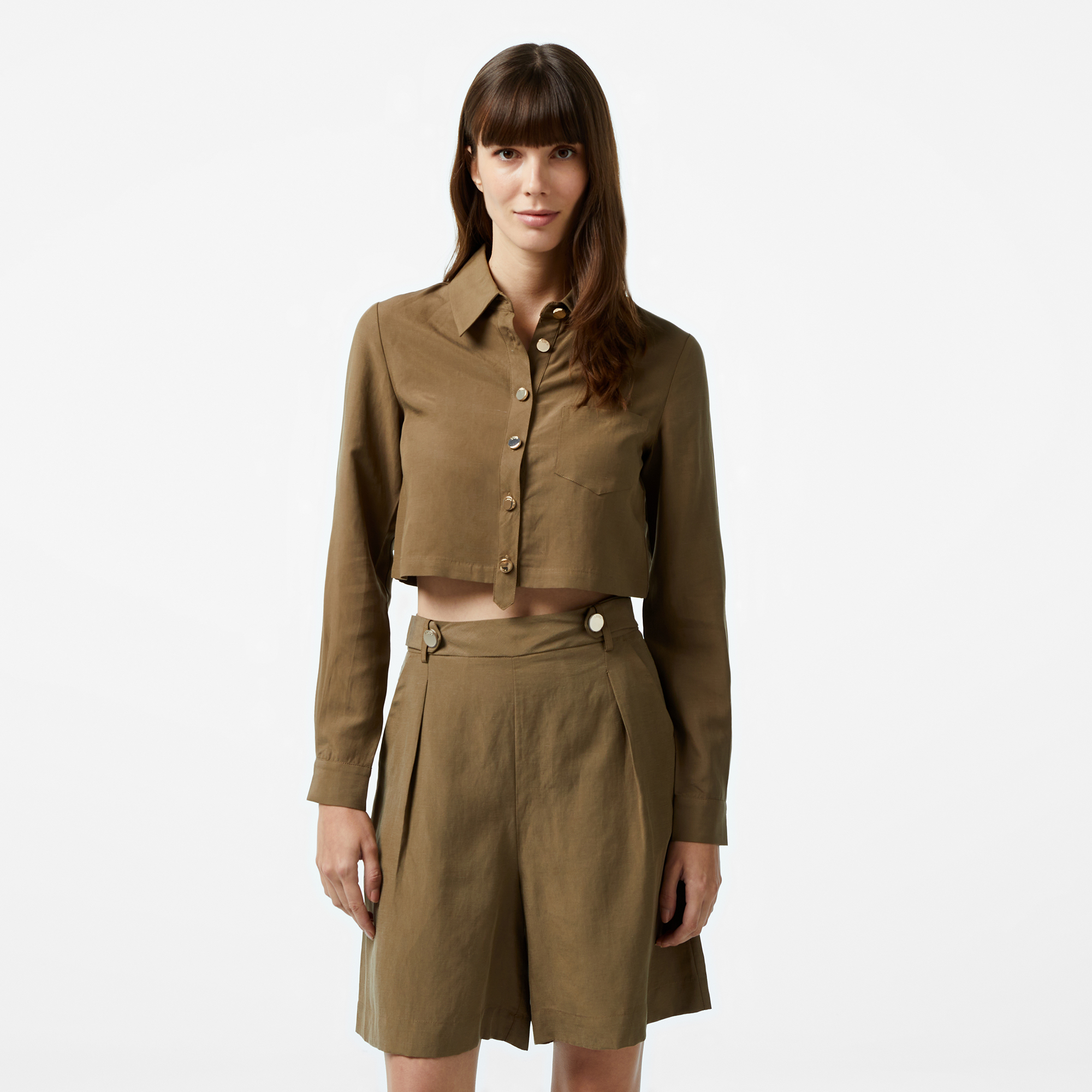 Liu Jo Kadın Haki Gömlek, her mevsim rahatlıkla kullanabileceğin zamansız bir tasarıma sahip.