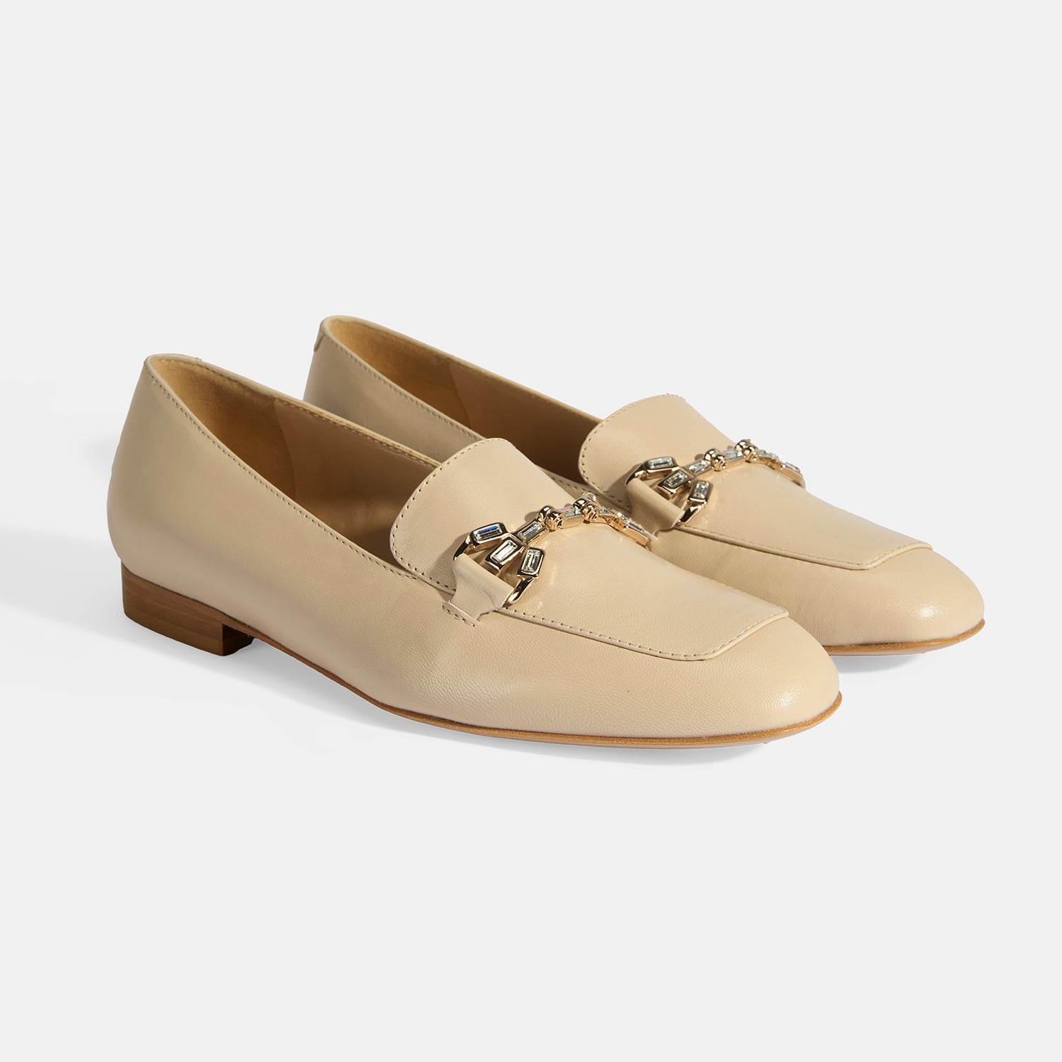 Luca Grossi Kadın Bej Taşlı Toka Aksesuarlı Deri Loafer