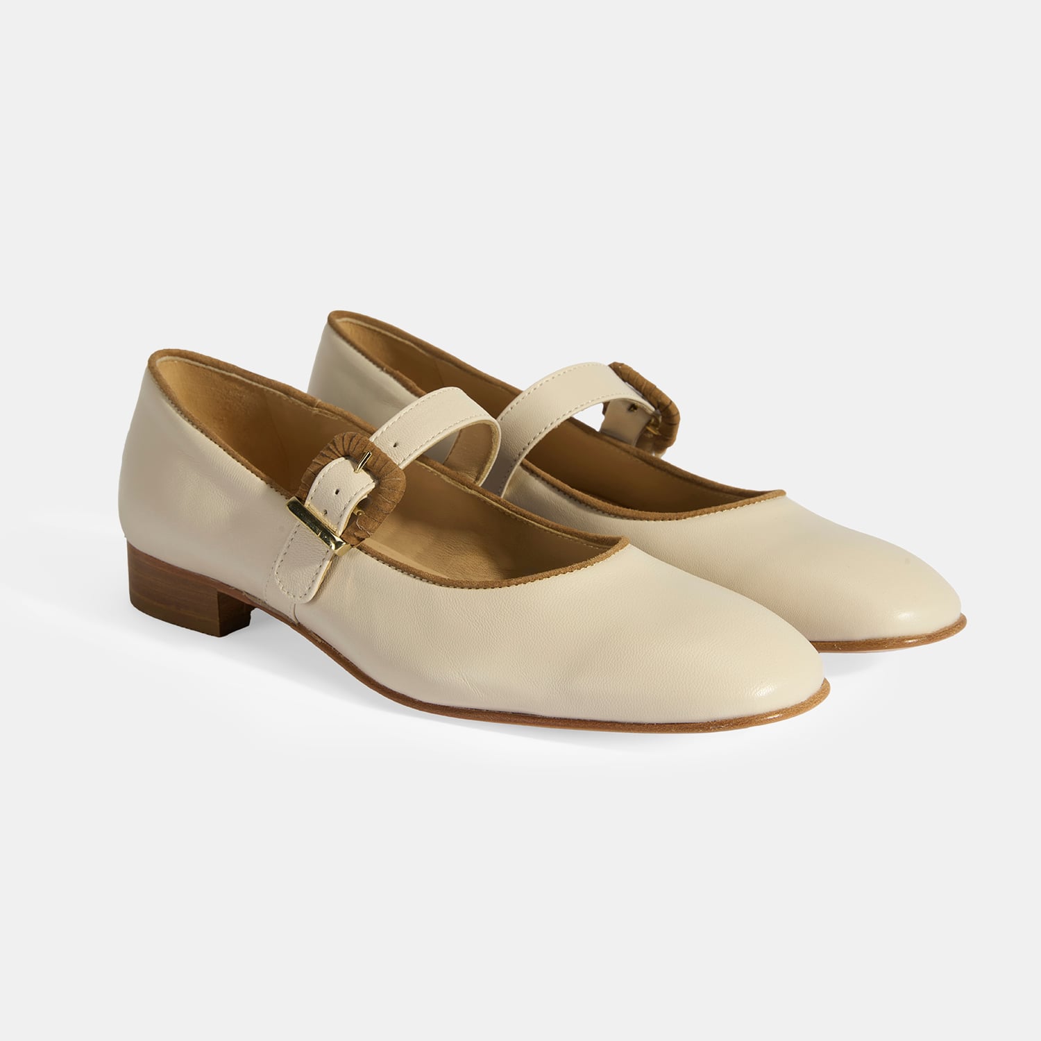 Luca Grossi Kadın Krem Toka Aksesuarlı Deri Mary Jane Babet
