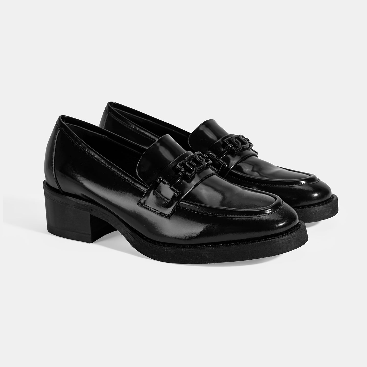 %100 deri, deri iç tabanlı, deri astarlı, metal toka detaylı, eva tabanlı, kadın klasik loafer. Topuk yükseklği 4,5 cm