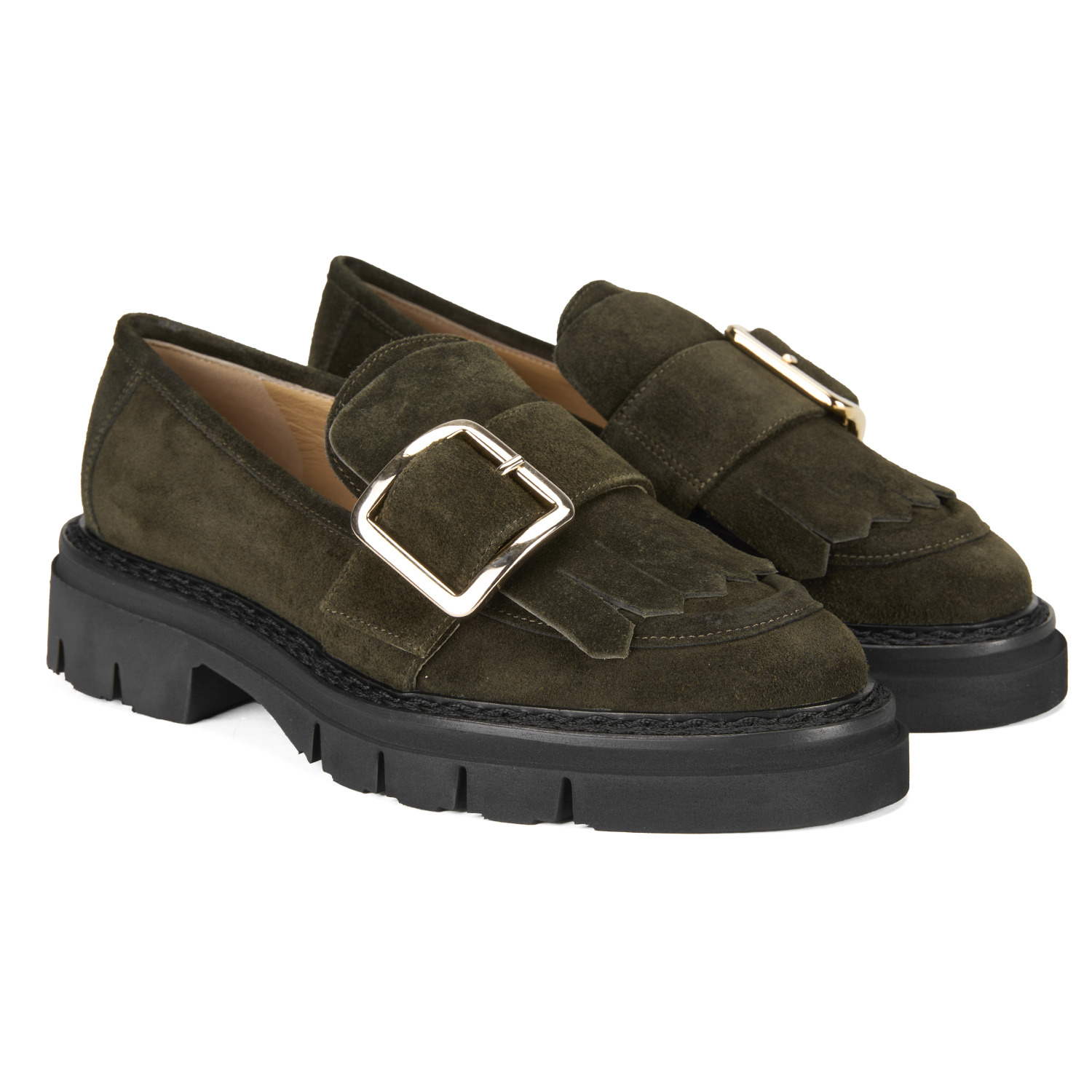 %100 süet deri, deri iç tabanlı, deri astarlı, metal toka aksesuar detaylı, eva tabanlı, püsküllü kadın loafer.