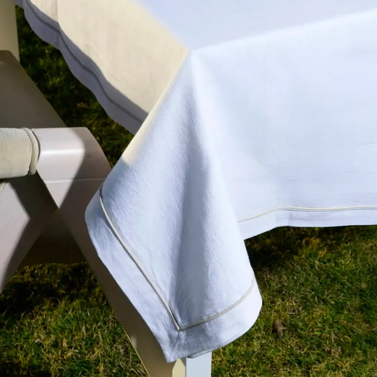 Lucca Pamuk Keten Biyeli Masa Örtüsü, beyaz renginin doğal zarafeti ve pamuk keten karışımlı dokusuyla sofralarınıza şık ve sıcak bir hava katıyor. İnce biyeli detayları sayesinde hem günlük kullanıma hem de özel davetlere uyum sağlayarak sofistike bir atmosfer oluşturuyor.