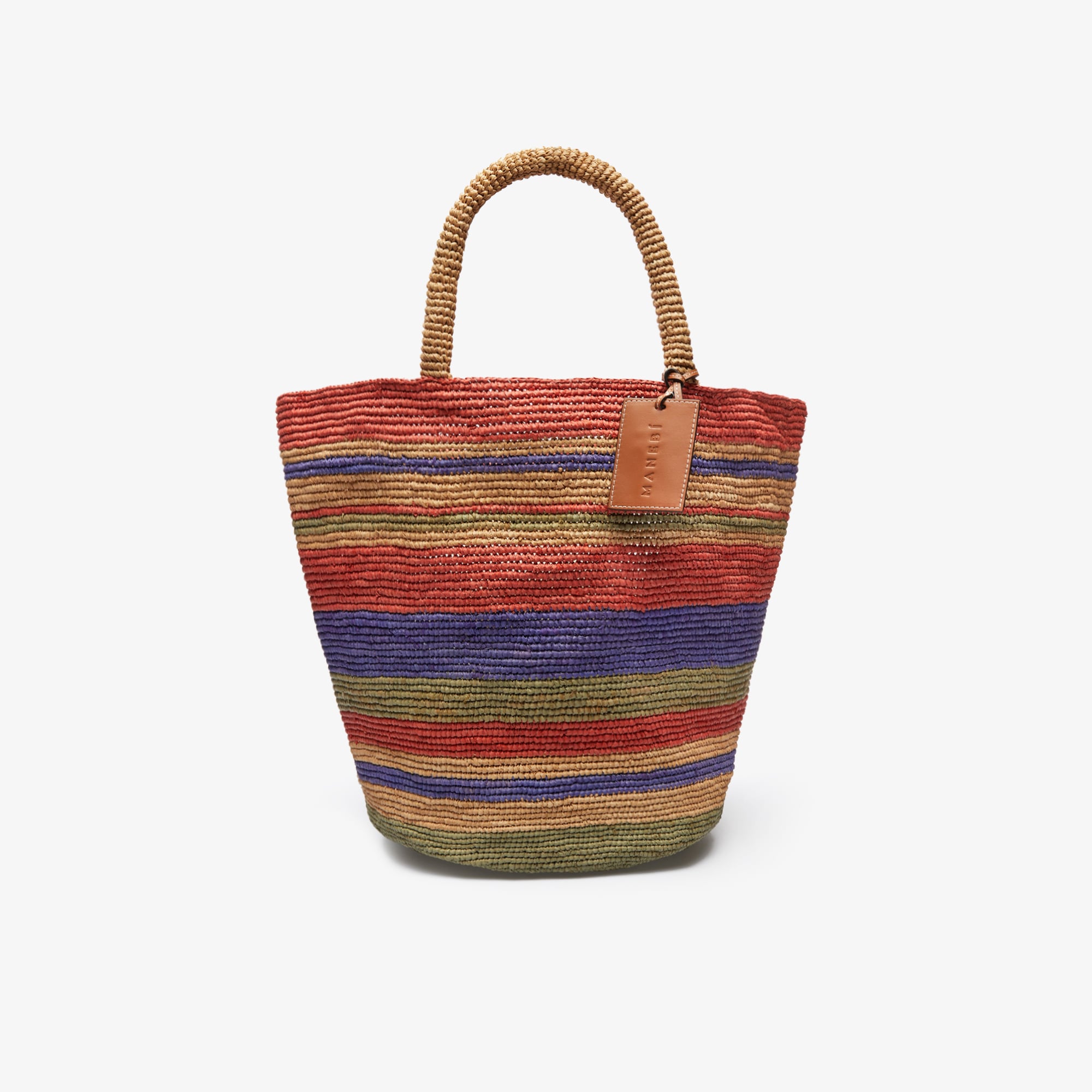 MANEBI kadın çantası, rengarenk şeritlerle tasarlanmış bu şık ve fonksiyonel çanta, günlük kullanımın yanı sıra plaj gezileri için de ideal bir seçimdir. Doğal dokuma malzemeden üretilmiş olup, dayanıklı yapısı ile dikkat çeker.