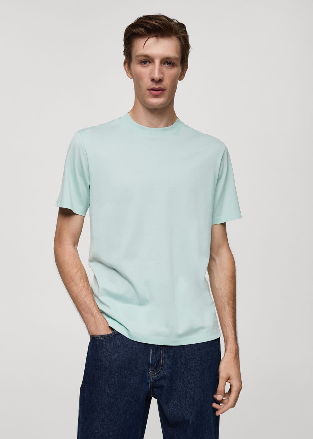 Mango Erkek %100 Pamuklu Dar Kesim Tişört Su Yeşili