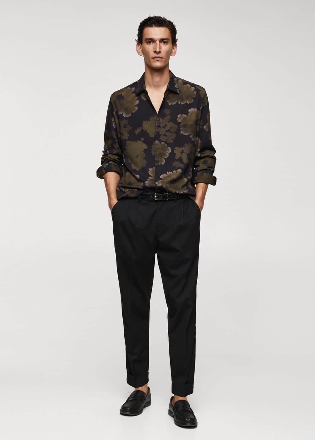 Mango Erkek Dökümlü Desenli Gömlek Haki