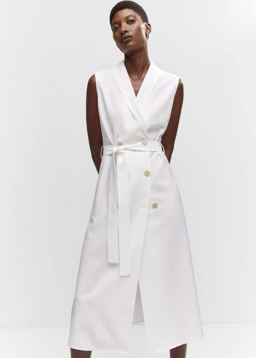 Mango Kadın Anvelop Kesimli Düğmeli Elbise Beyaz
