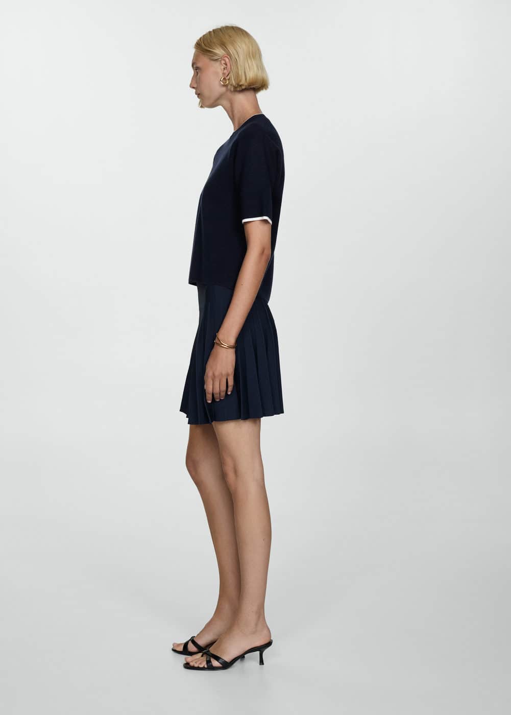 Mango Kadın Kontrast Çizgili Kısa Kollu Kazak Lacivert