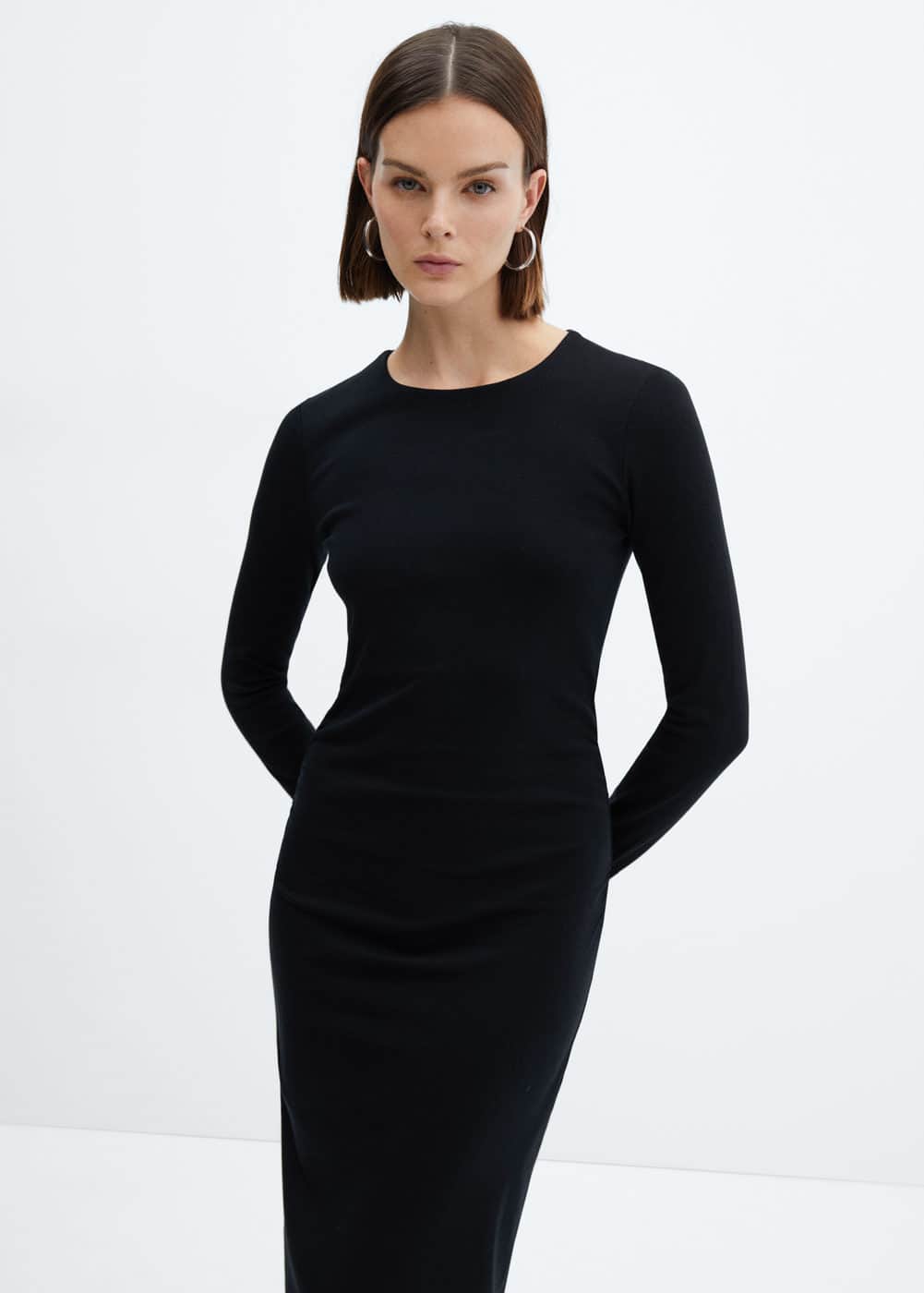 Pamuk karışımlı kumaş, Midi boy, Fit model, Yuvarlak yakalı, Uzun kollu, Büzgü detaylı, Ofis görünümü. 96% pamuk,4% elastan. KISA SANTRFÜJLE MAKİNEDE MAKS. 30°C'DE YIKAYIN. ÇAMAŞIR SUYU KULLANMAYIN. MAKS. 110°C İLE ÜTÜLEYİN. KURU TEMİZLEME YAPILMAZ. KURUTMA MAKİNESİNDE KURUTULAMAZ