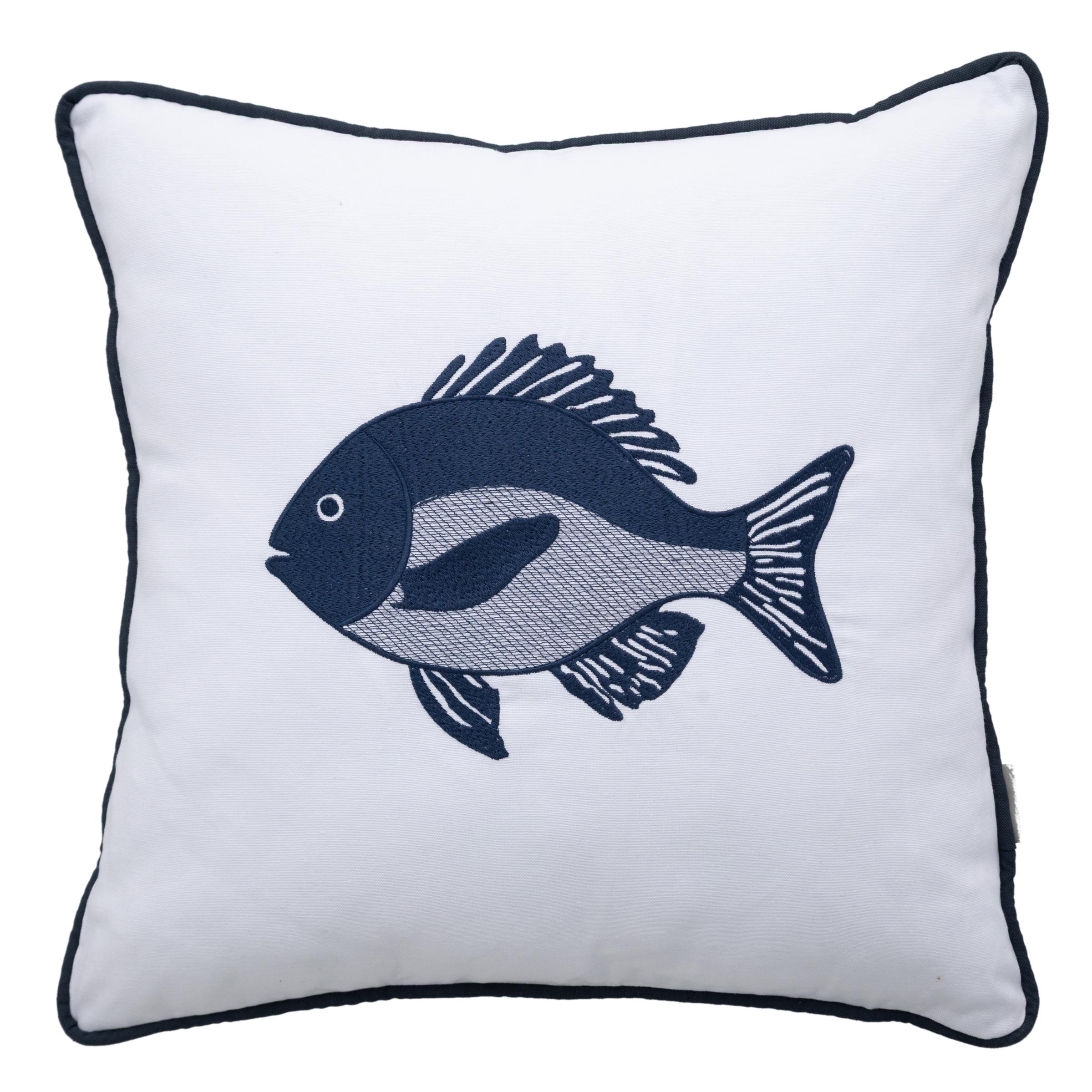 MARİN FISH NAKIŞLI KIRLENT BEYAZ LACİVERT 50X50 CM