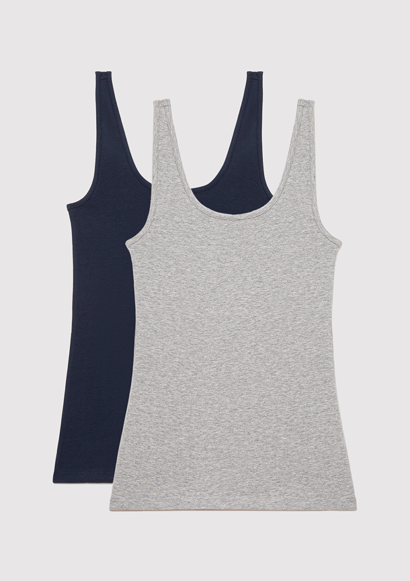 Mavi 2li Gri Lacivert Kadın Basic Atlet Fitted / Vücuda Oturan Kesim 1611367-70490