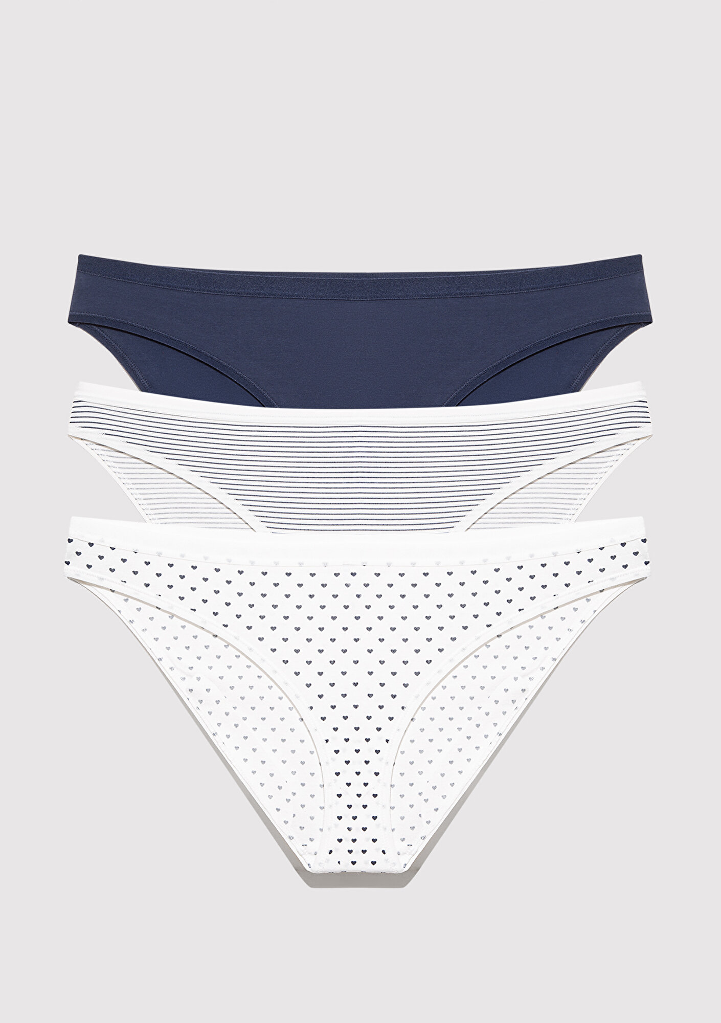 Mavi nin kadın koleksiyonundan 3lü Klasik Külot. Günlük kullanımda konforu ön planda tutanlar için tasarlanan yeni iç giyim koleksiyonu. Doğal lif pamuk ile geliştirilen pamuklu kumaşlar, yumuşak, hafif ve nefes alabilir özelliğe sahiptir. Kumaş içerisinde bulunan yüzde 5 elastan, kumaşa esneklik ve yumuşaklık sağlar. Koleksiyon, Classic, Hipster, Tanga ve Brazilian model seçenekleri ve beyaz, siyah, krem, mavi gibi ana renklerin yanı sıra yumuşak pastel tonlarından oluşan çoklu paketlerle sunuluyor.